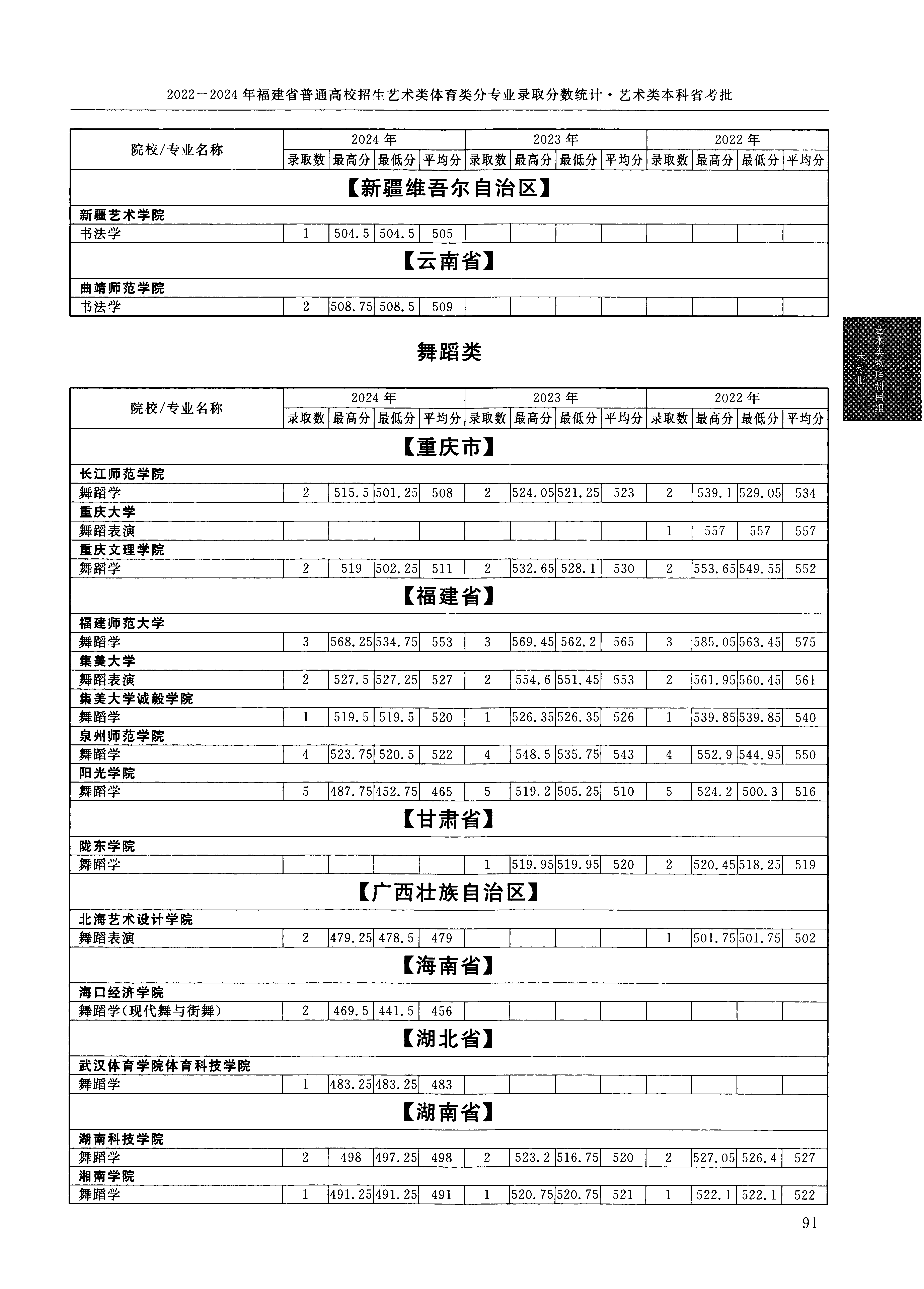 2024年福建高考艺术类本科省考批舞蹈类 湘南学院 的 舞蹈学 专业录取分数溯源信息