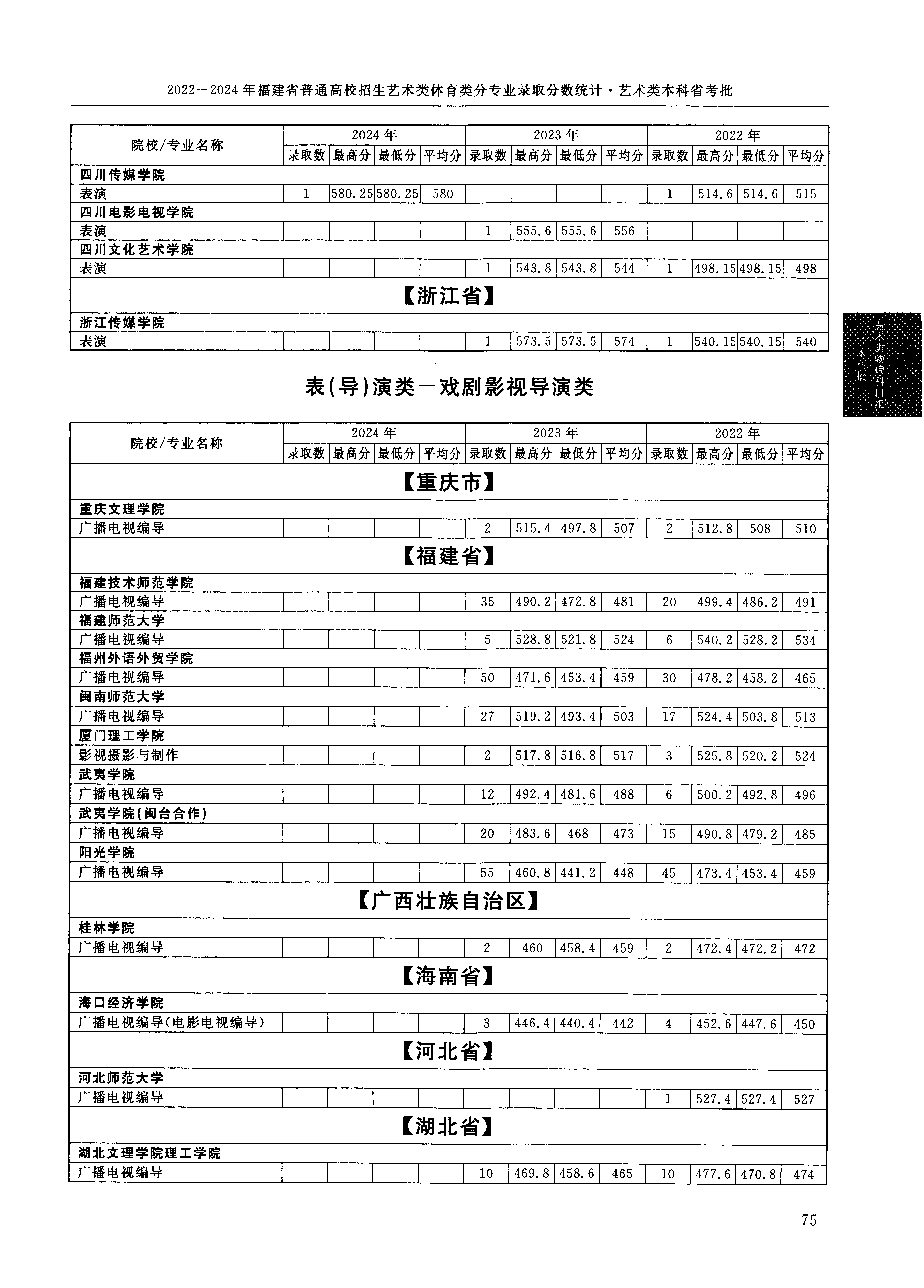 2024年福建高考艺术类本科省考批表(导)演类戏剧影视表演方向 四川传媒学院 的 表演 专业录取分数溯源信息