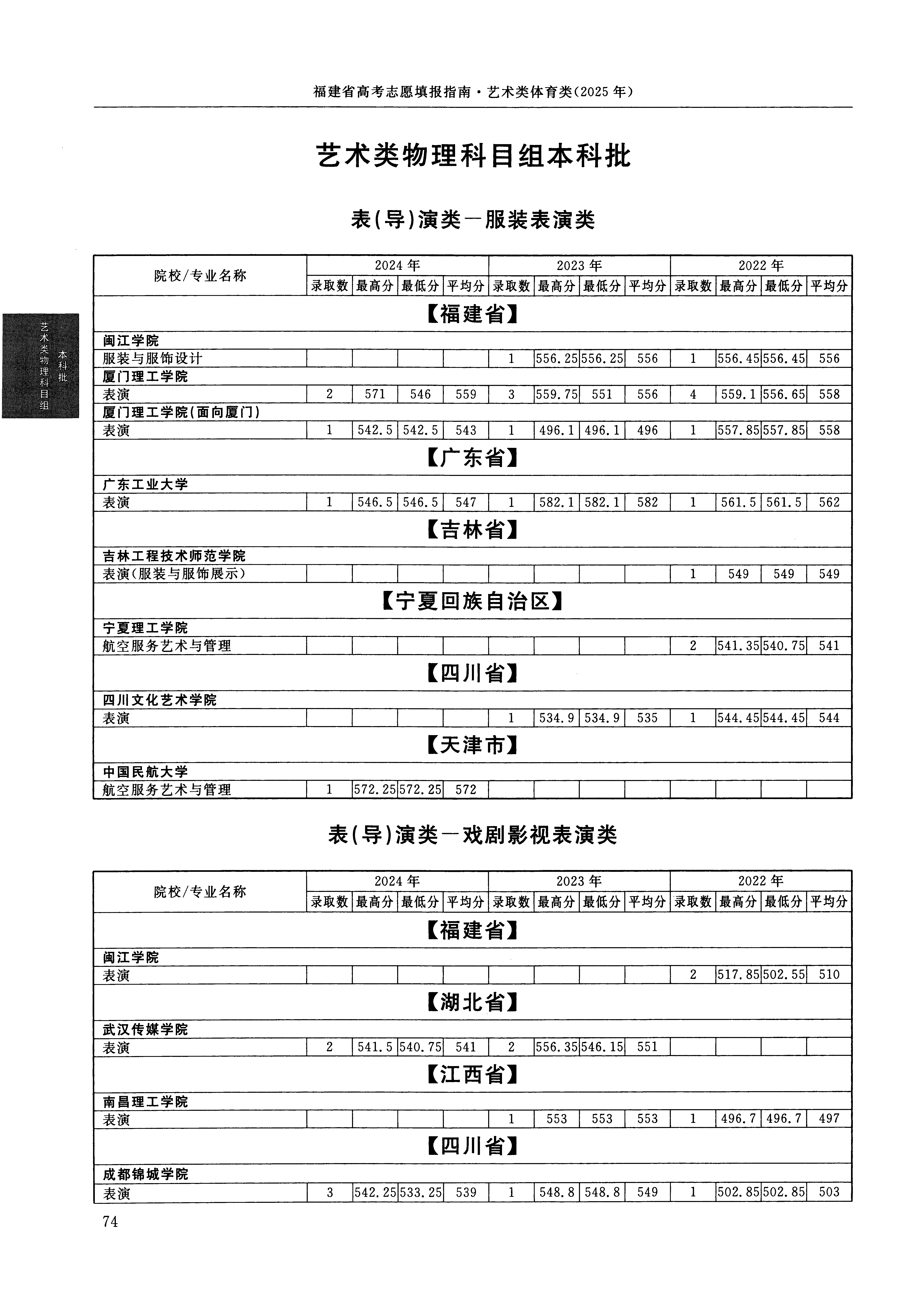 2024年福建高考艺术类本科省考批表(导)演类服装表演方向 中国民航大学 的 航空服务艺术与管理 专业录取分数溯源信息