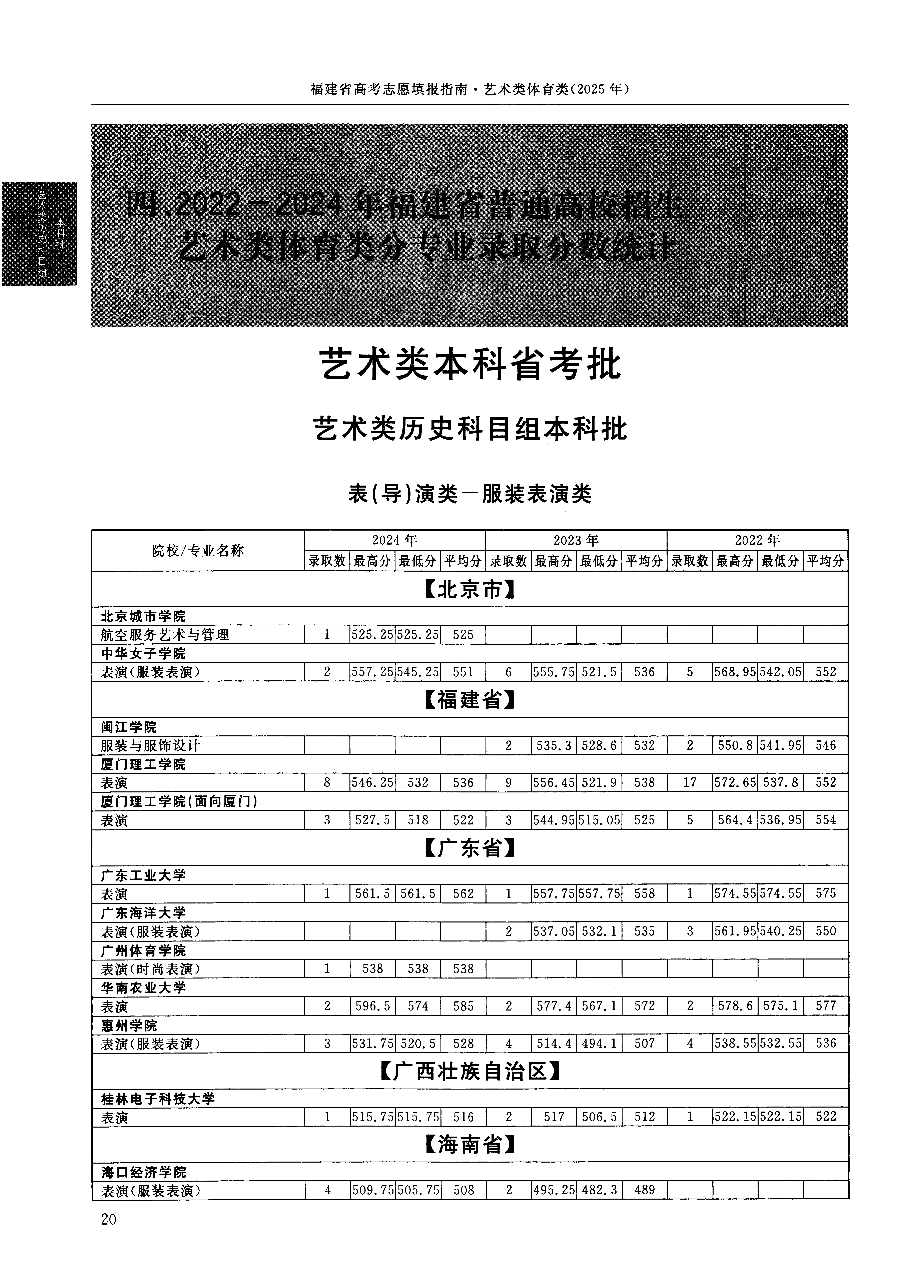 2024年福建高考艺术类本科省考批表(导)演类服装表演方向 厦门理工学院 的 表演 专业录取分数溯源信息