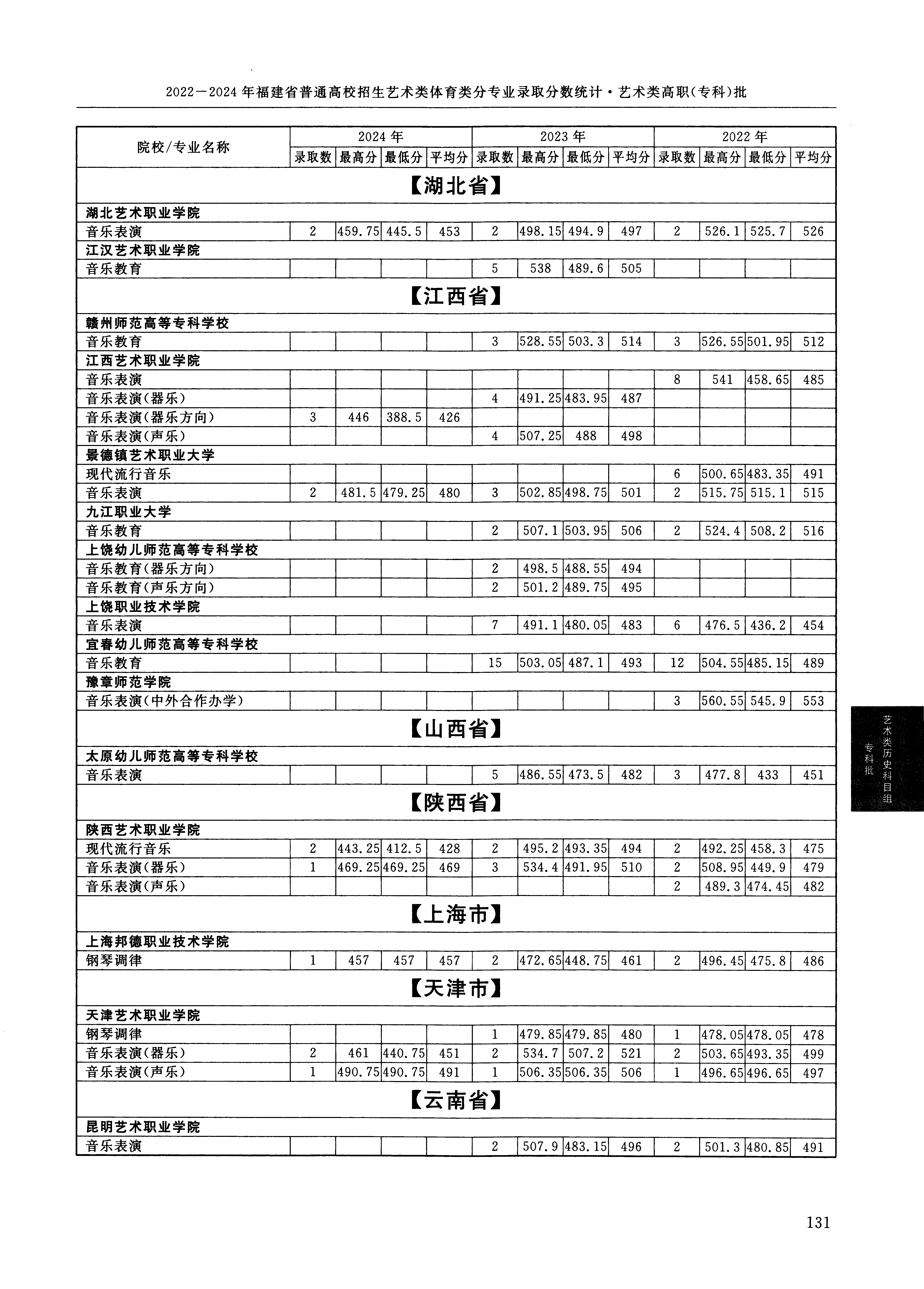 2024年福建高考艺术类高职(专科)批音乐类表演类 陕西艺术职业学院 的 音乐表演 专业录取分数溯源信息