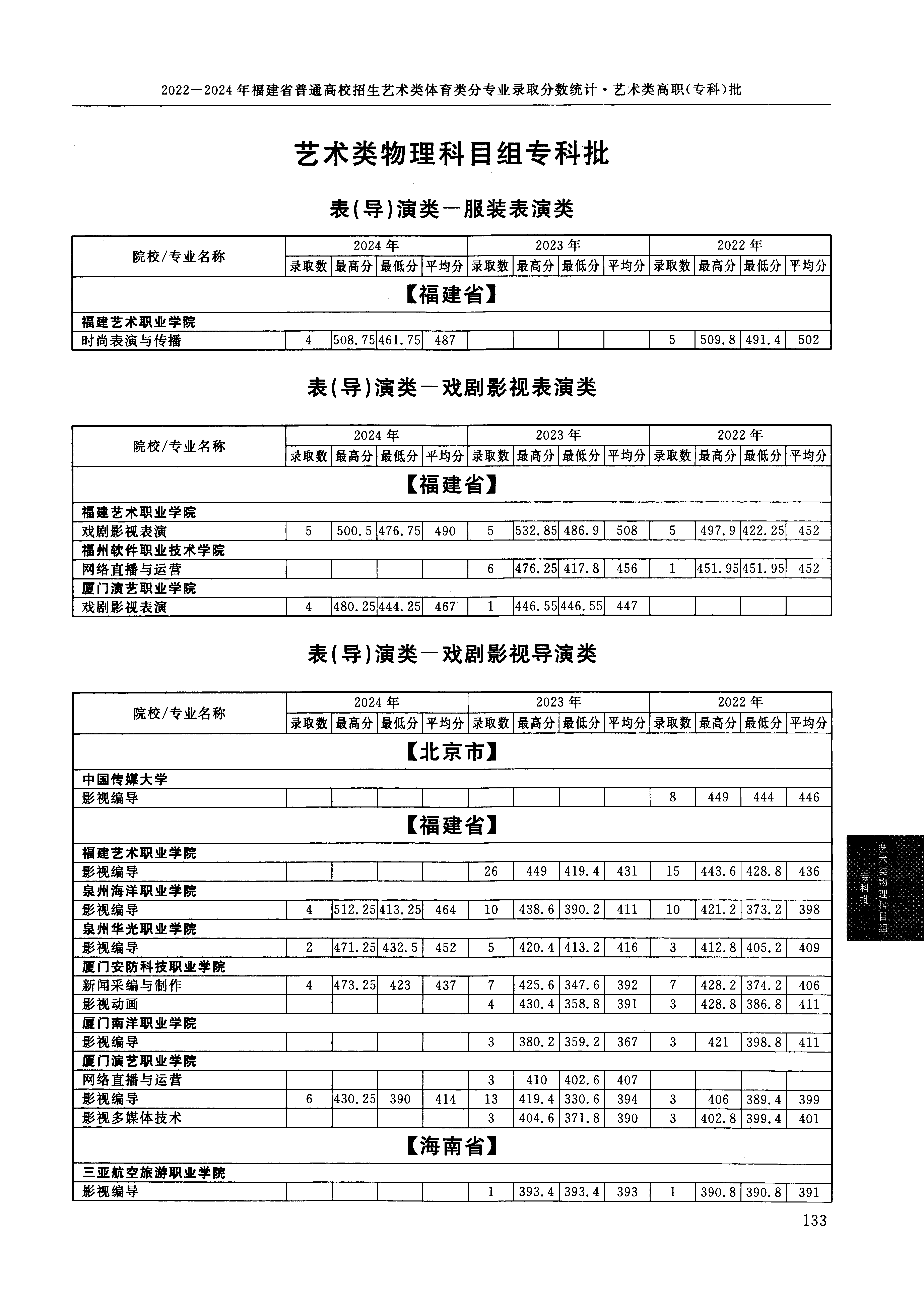 2024年福建高考艺术类高职(专科)批表(导)演类服装表演方向 福建艺术职业学院 的 时尚表演与传播 专业录取分数溯源信息