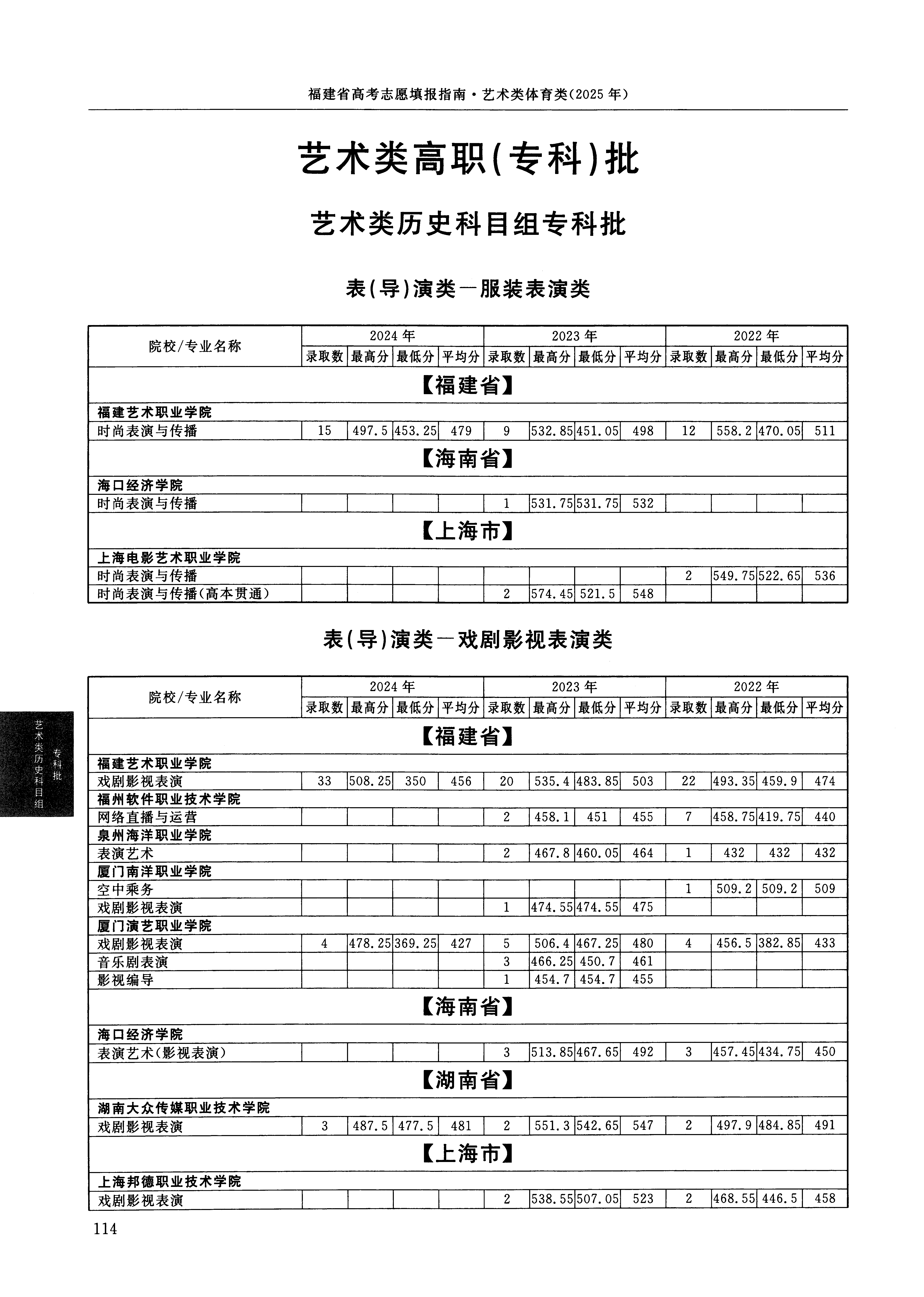 2024年福建高考艺术类高职(专科)批表(导)演类戏剧影视表演方向 湖南大众传媒职业技术学院 的 戏剧影视表演 专业录取分数溯源信息
