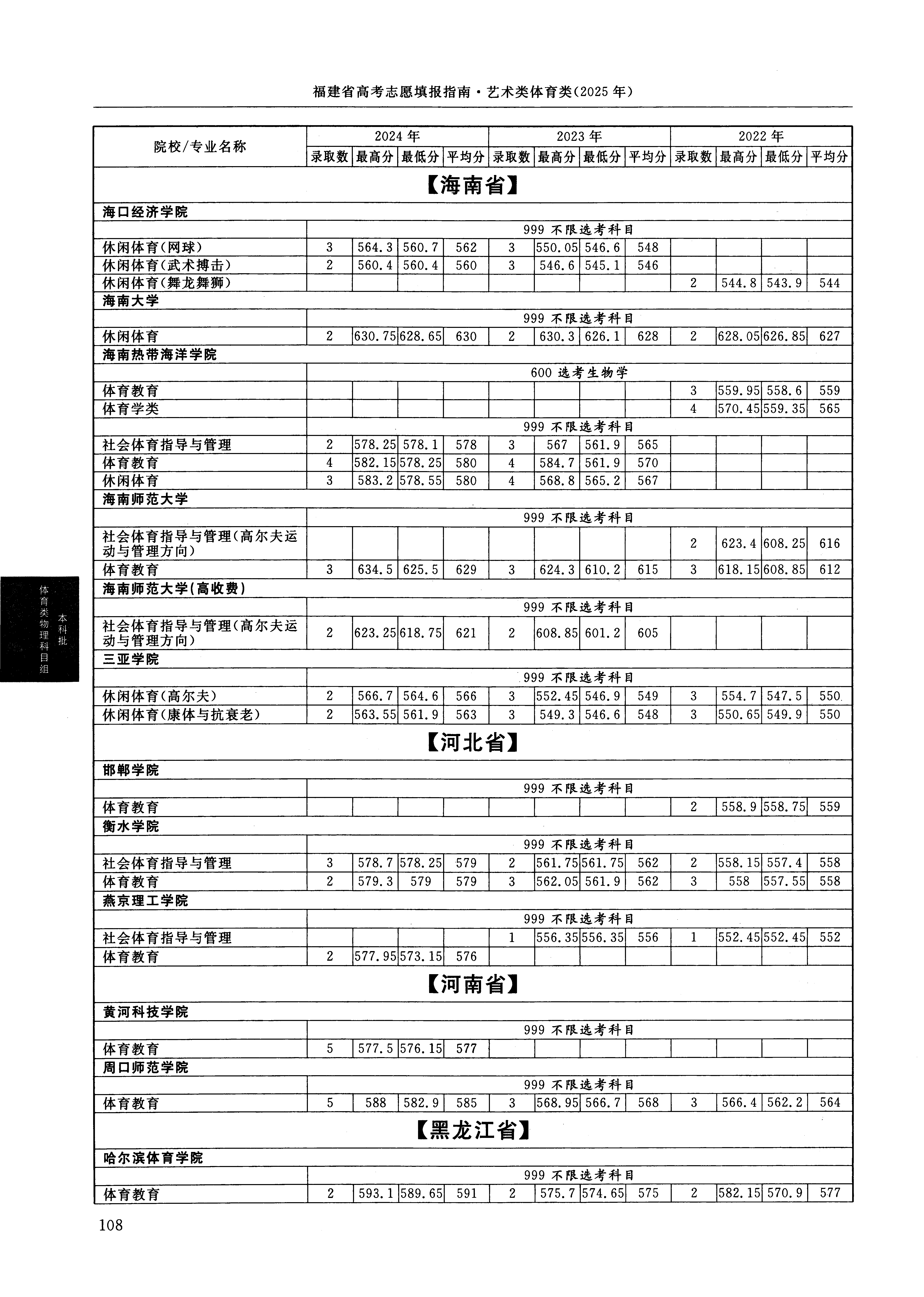 2024年福建高考体育类本科批 海南热带海洋学院 的 社会体育指导与管理 专业录取分数溯源信息
