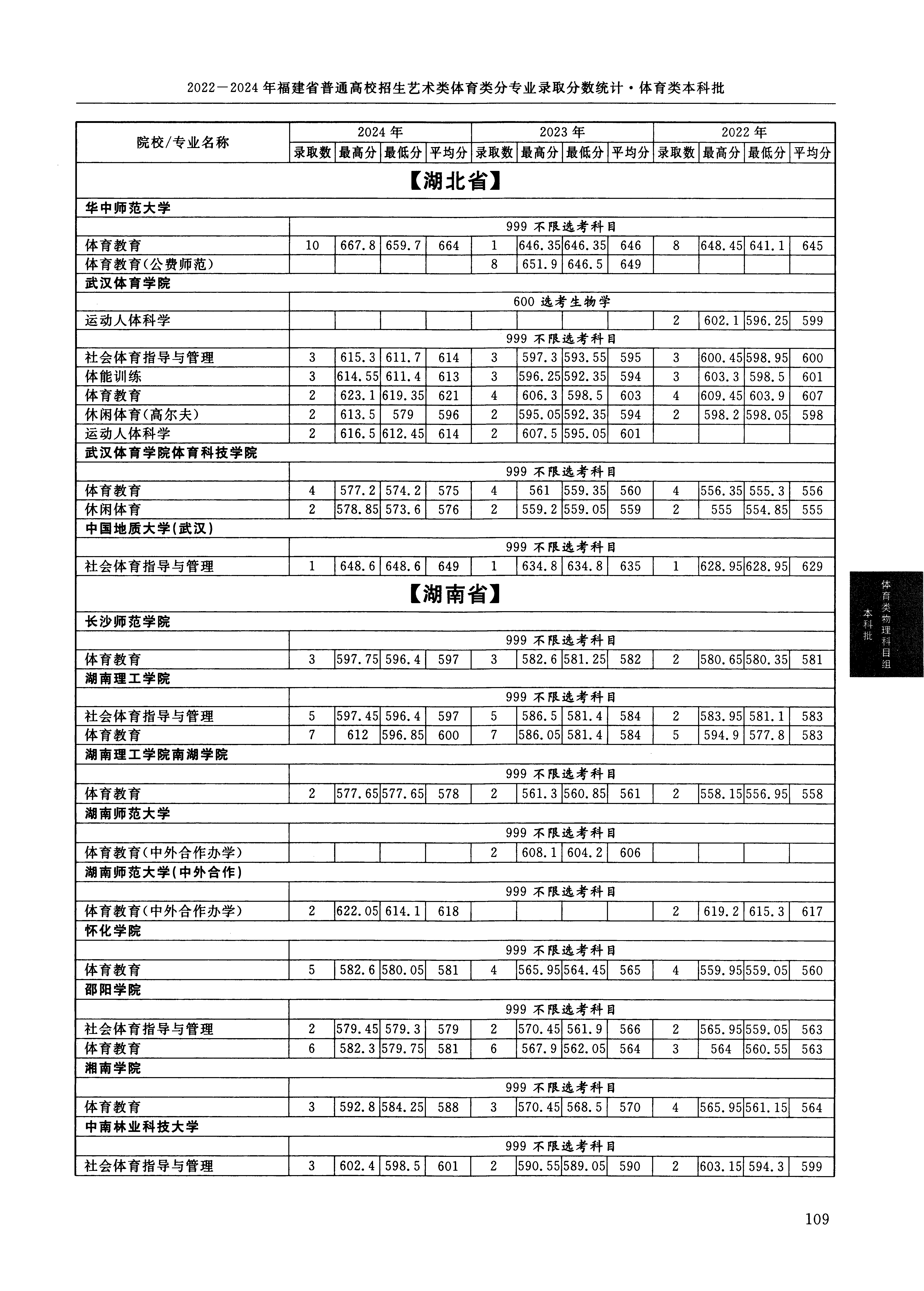 2024年福建高考体育类本科批 湖南师范大学 的 体育教育 专业录取分数溯源信息