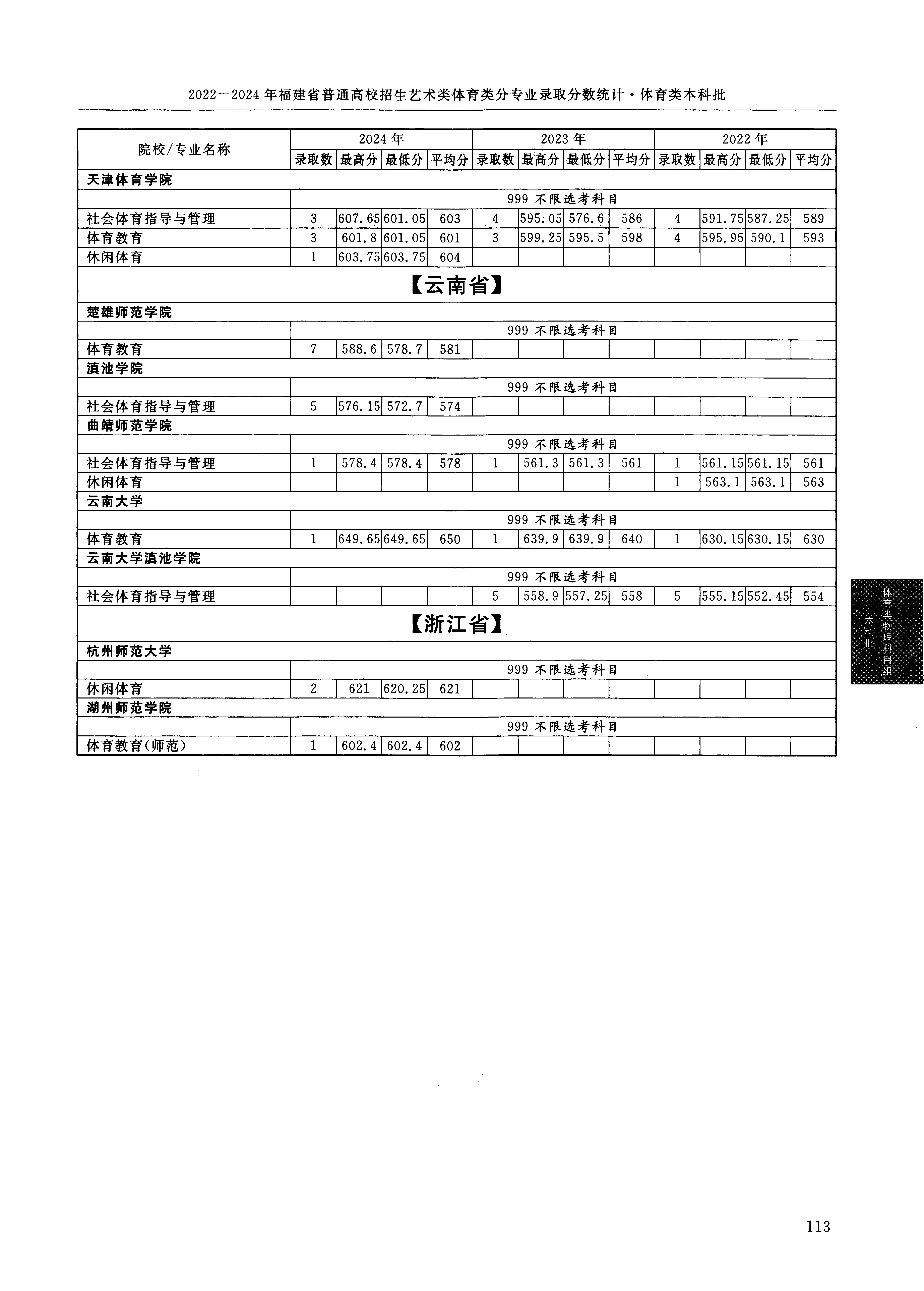 2024年福建高考体育类本科批 天津体育学院 的 休闲体育 专业录取分数溯源信息