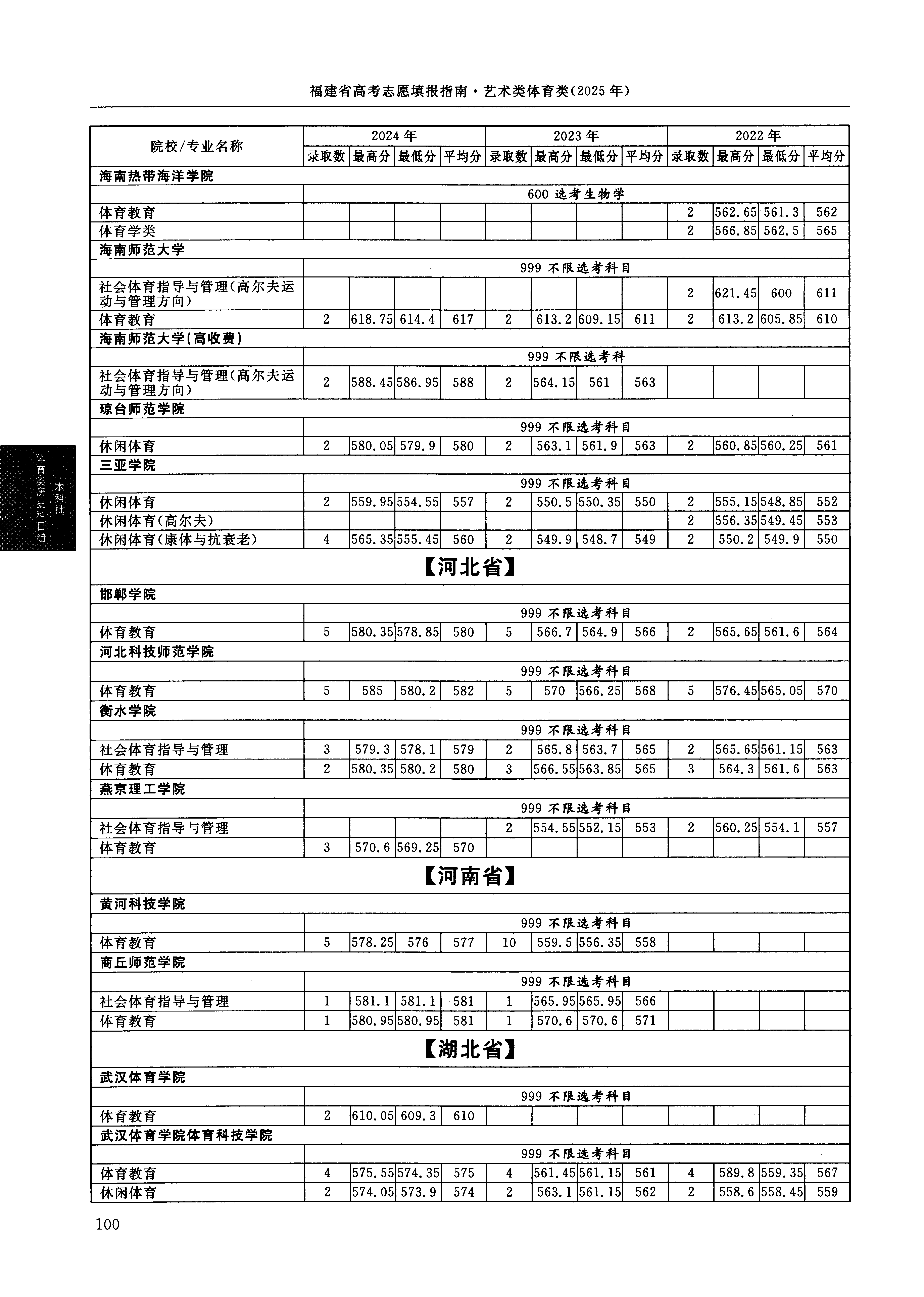 2024年福建高考体育类本科批 河北科技师范学院 的 体育教育 专业录取分数溯源信息