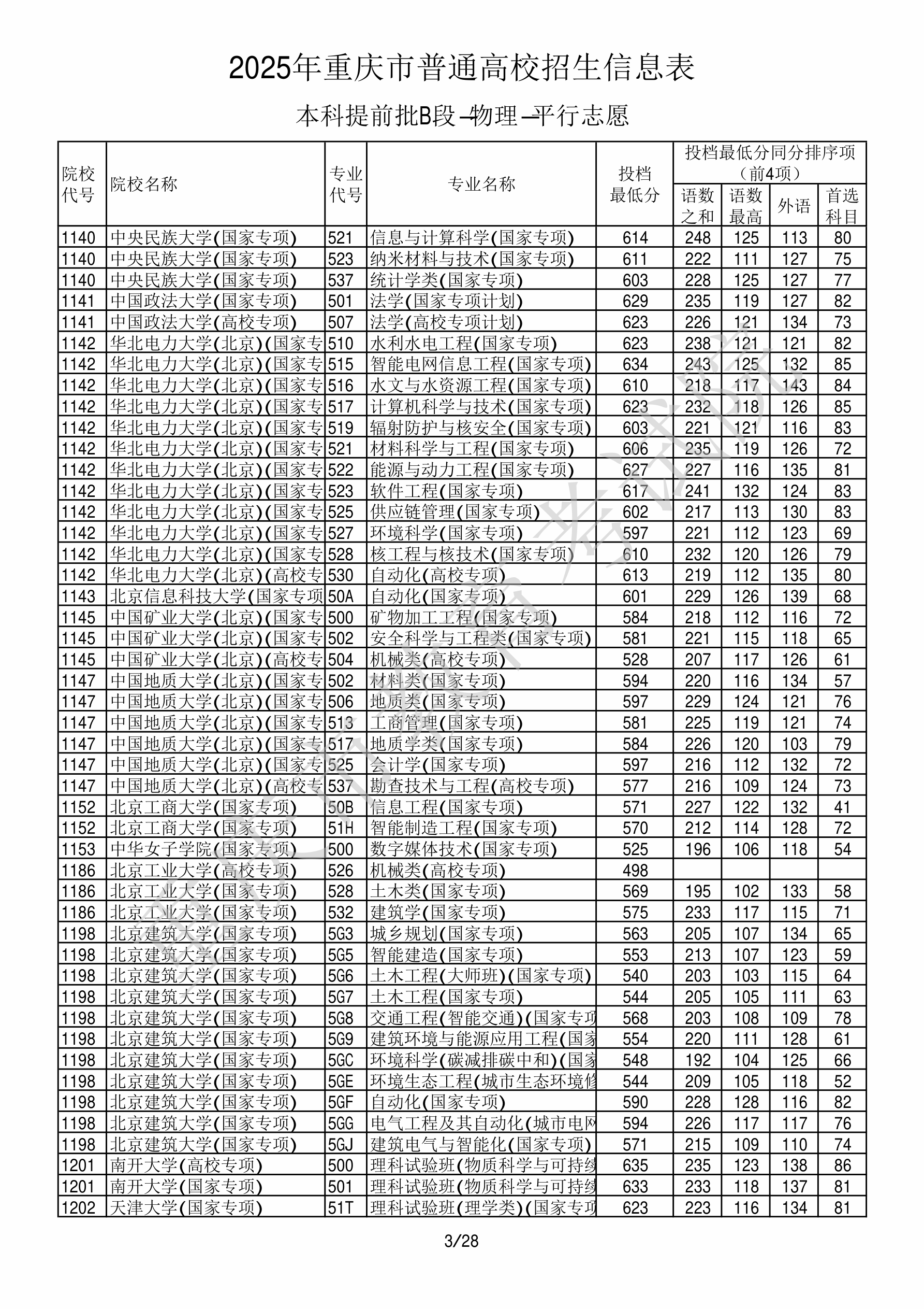2025年重庆高考普通类本科提前批B段 北京信息科技大学 的 自动化 专业录取分数溯源信息
