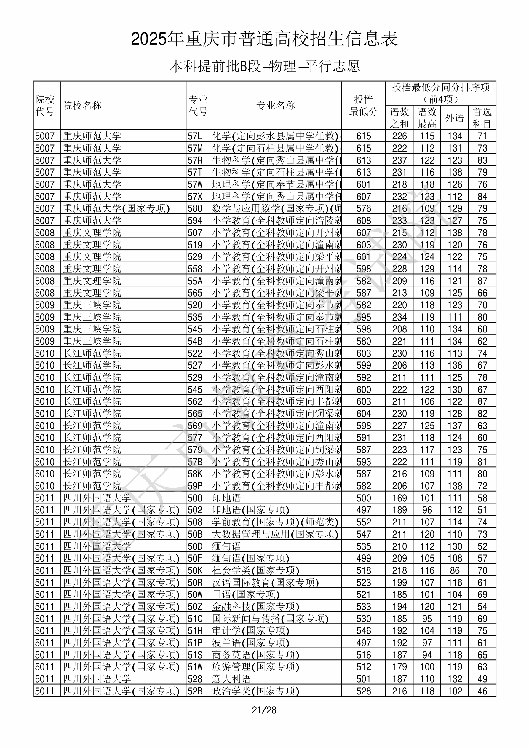 2025年重庆高考普通类本科提前批B段 重庆师范大学 的 生物科学 专业录取分数溯源信息