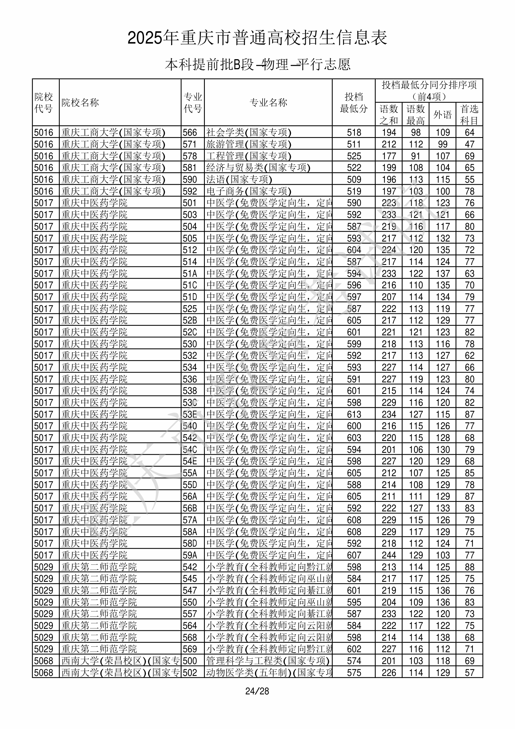 2025年重庆高考普通类本科提前批B段 重庆中医药学院 的 中医学 专业录取分数溯源信息