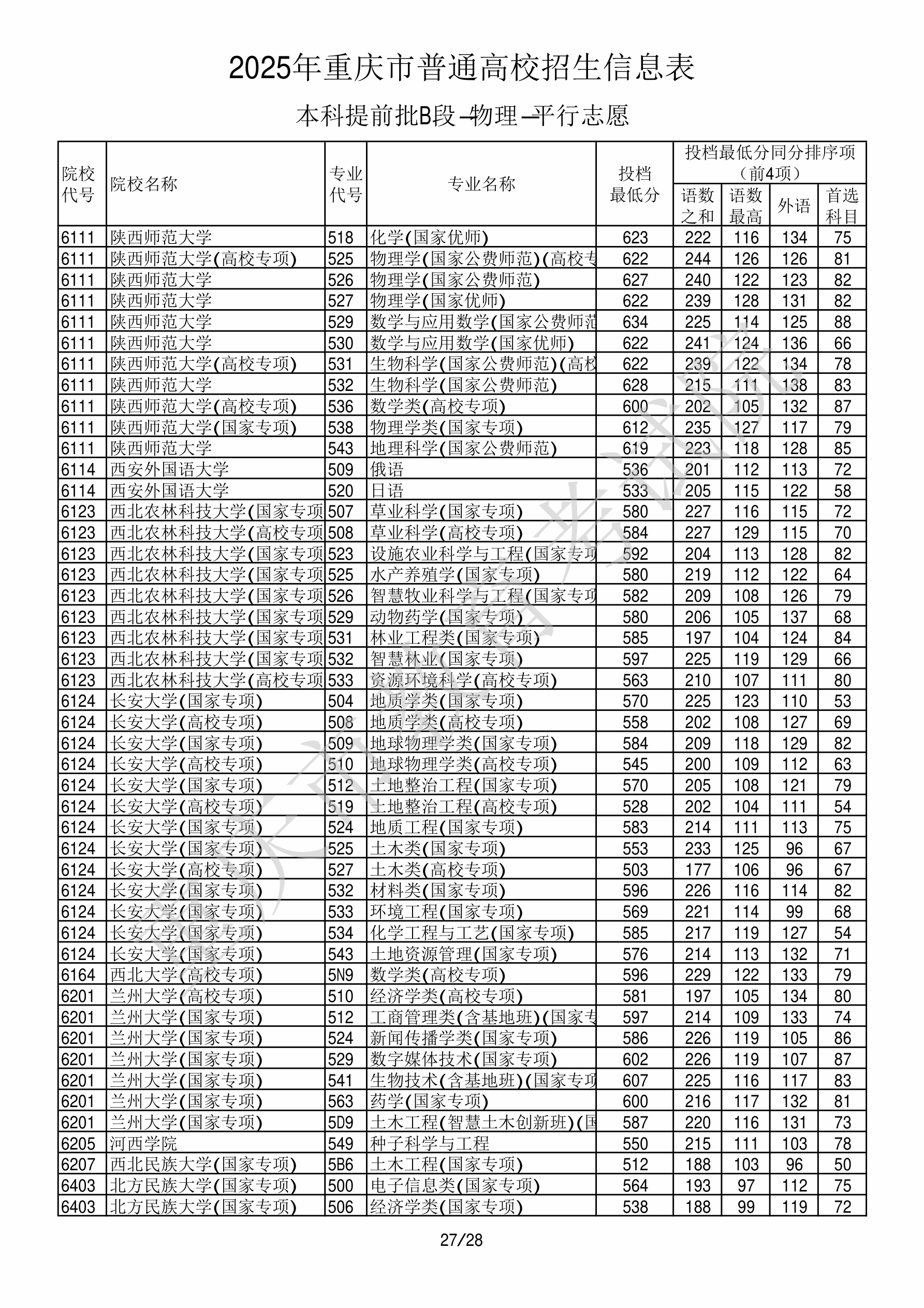 2025年重庆高考普通类本科提前批B段 陕西师范大学 的 生物科学 专业录取分数溯源信息