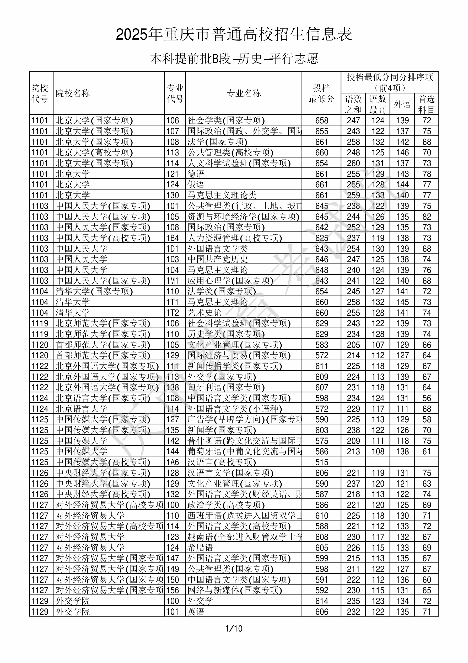2025年重庆高考普通类本科提前批B段 清华大学 的 法学类 专业录取分数溯源信息