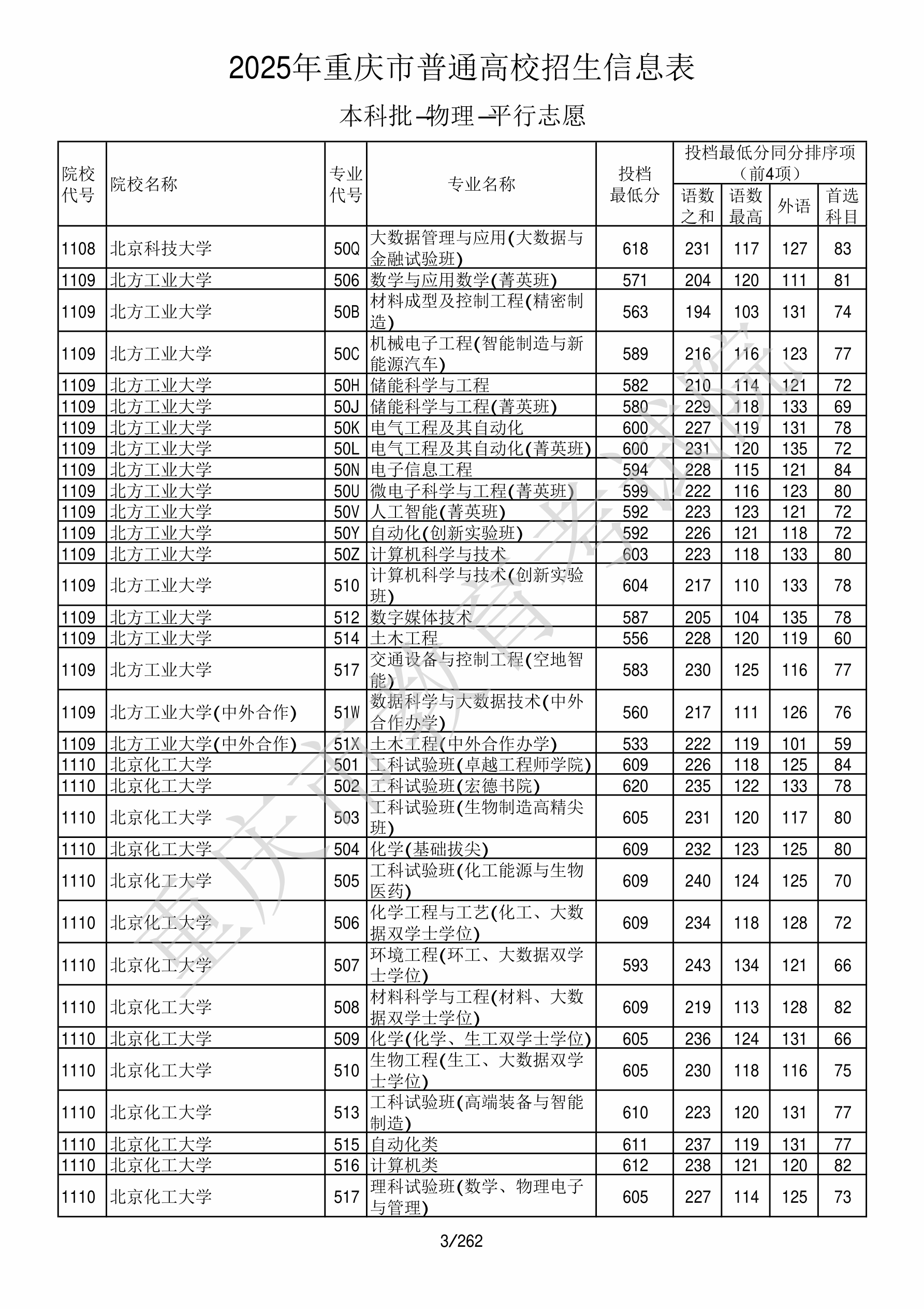 2025年重庆高考普通类本科批 北京化工大学 的 化学 专业录取分数溯源信息