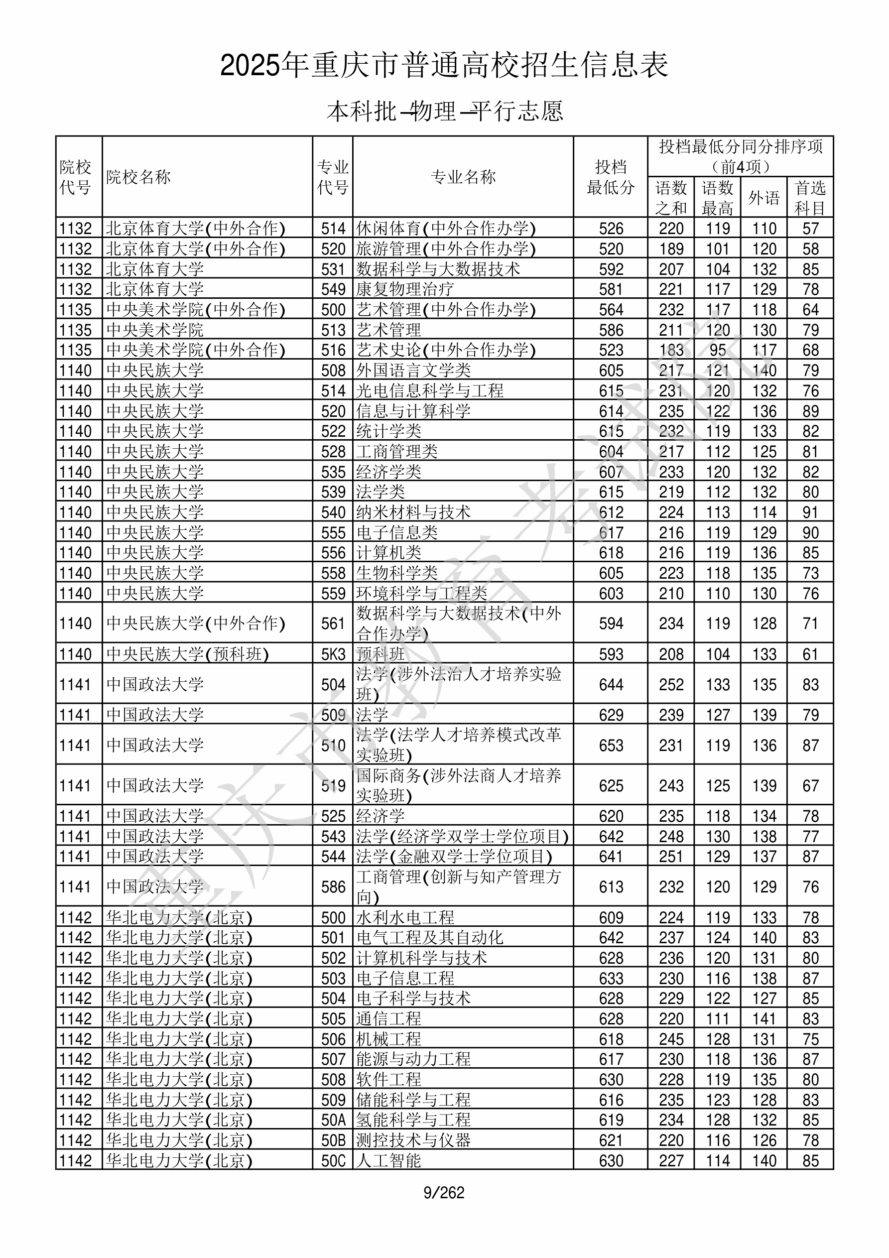 2025年重庆高考普通类本科批 北京体育大学 的 数据科学与大数据技术 专业录取分数溯源信息