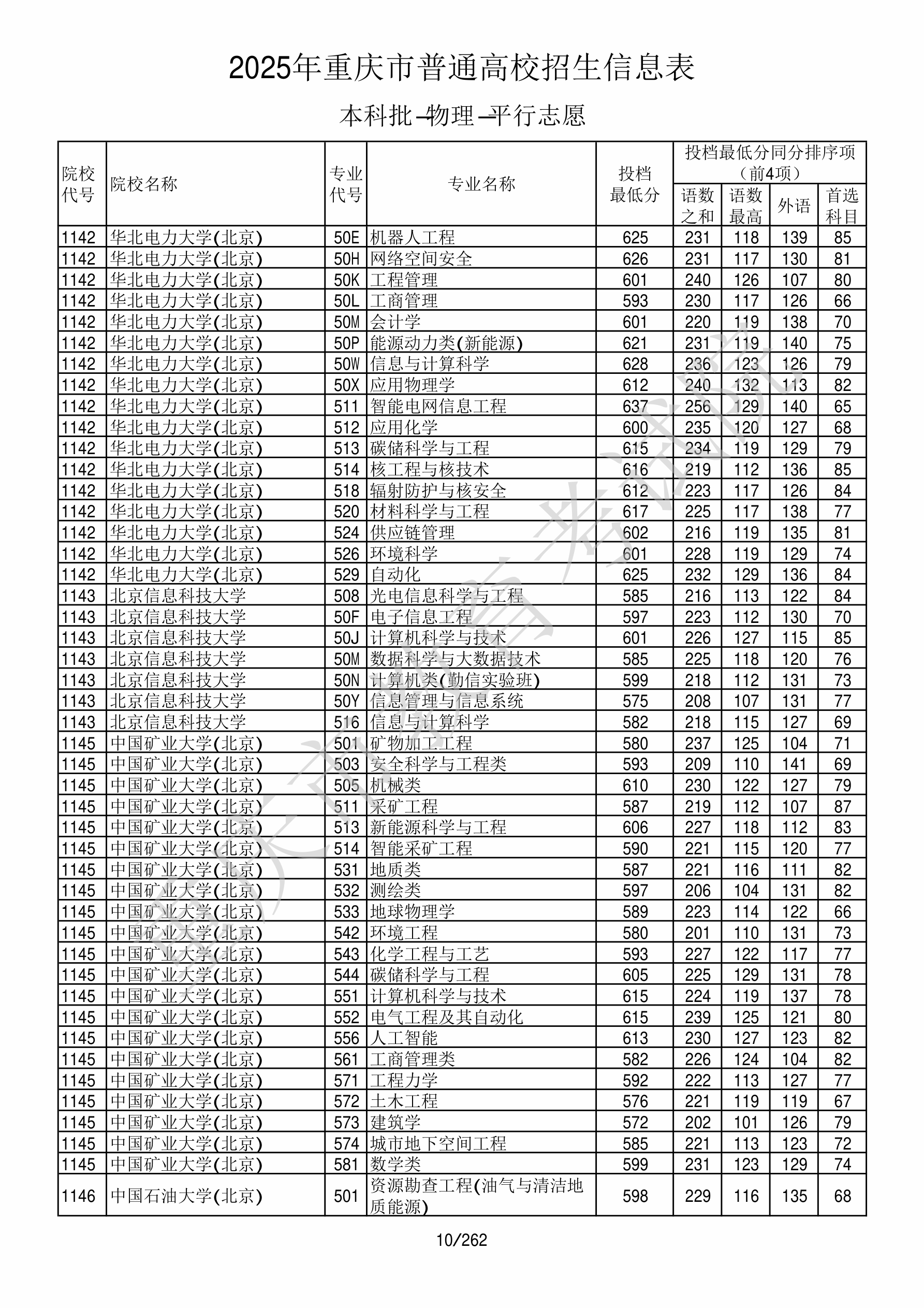 2025年重庆高考普通类本科批 北京信息科技大学 的 数据科学与大数据技术 专业录取分数溯源信息
