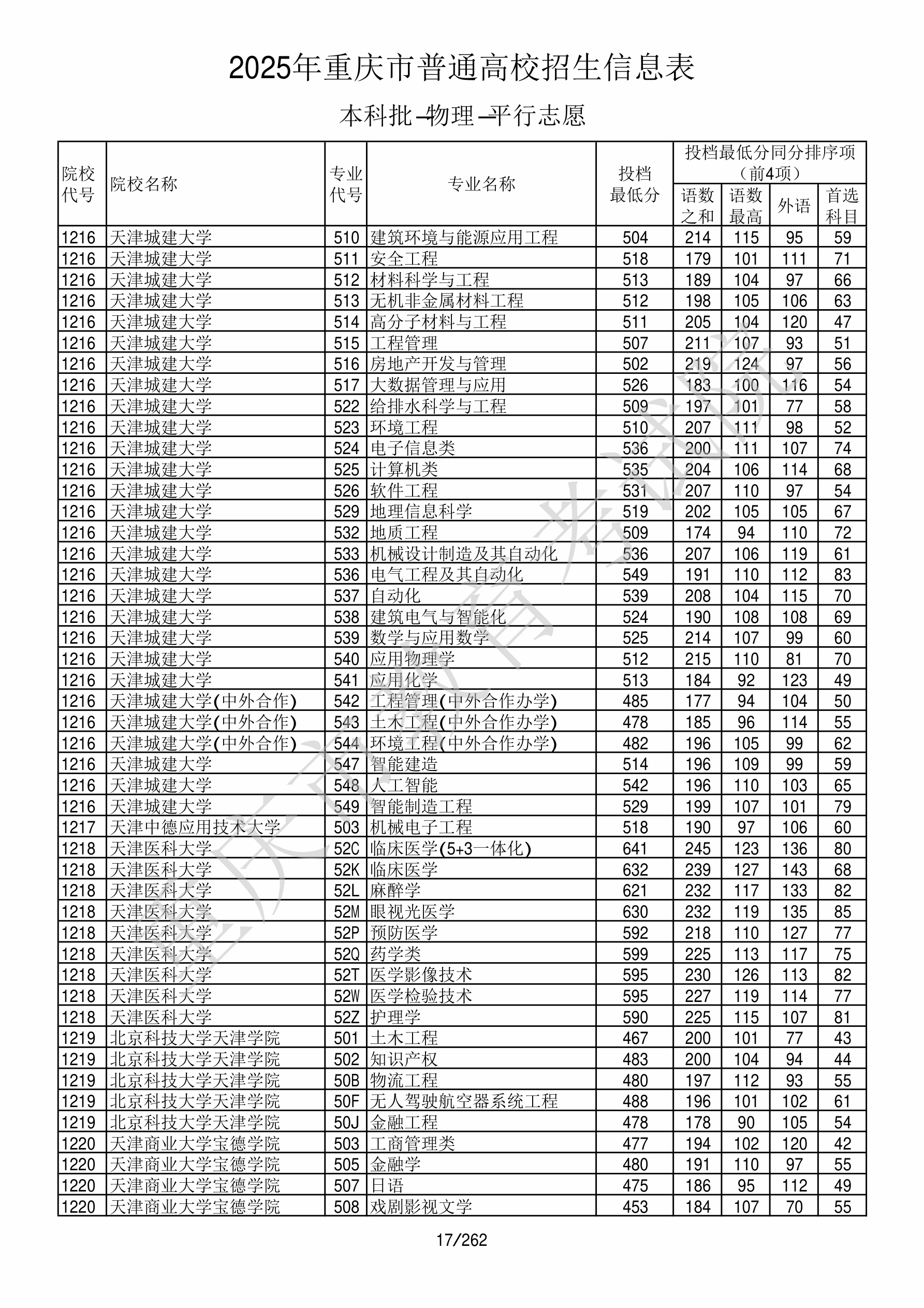2025年重庆高考普通类本科批 天津医科大学 的 临床医学 专业录取分数溯源信息