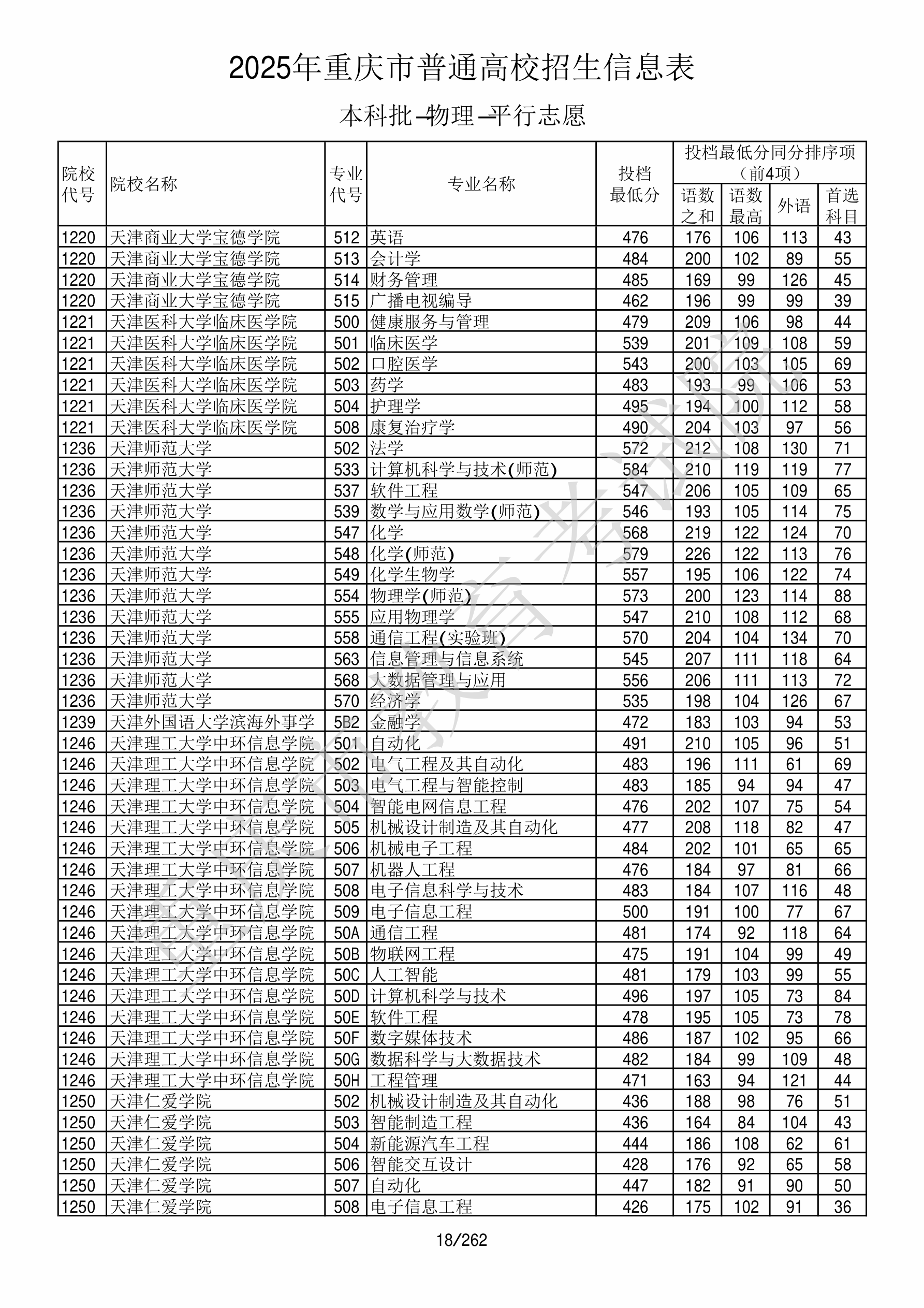 | 院校代码 | 院校名称 | 专业代码 | 专业名称 | 最低分数 | 最低位次 | 专业层次 | 限考科目 | 投档 |