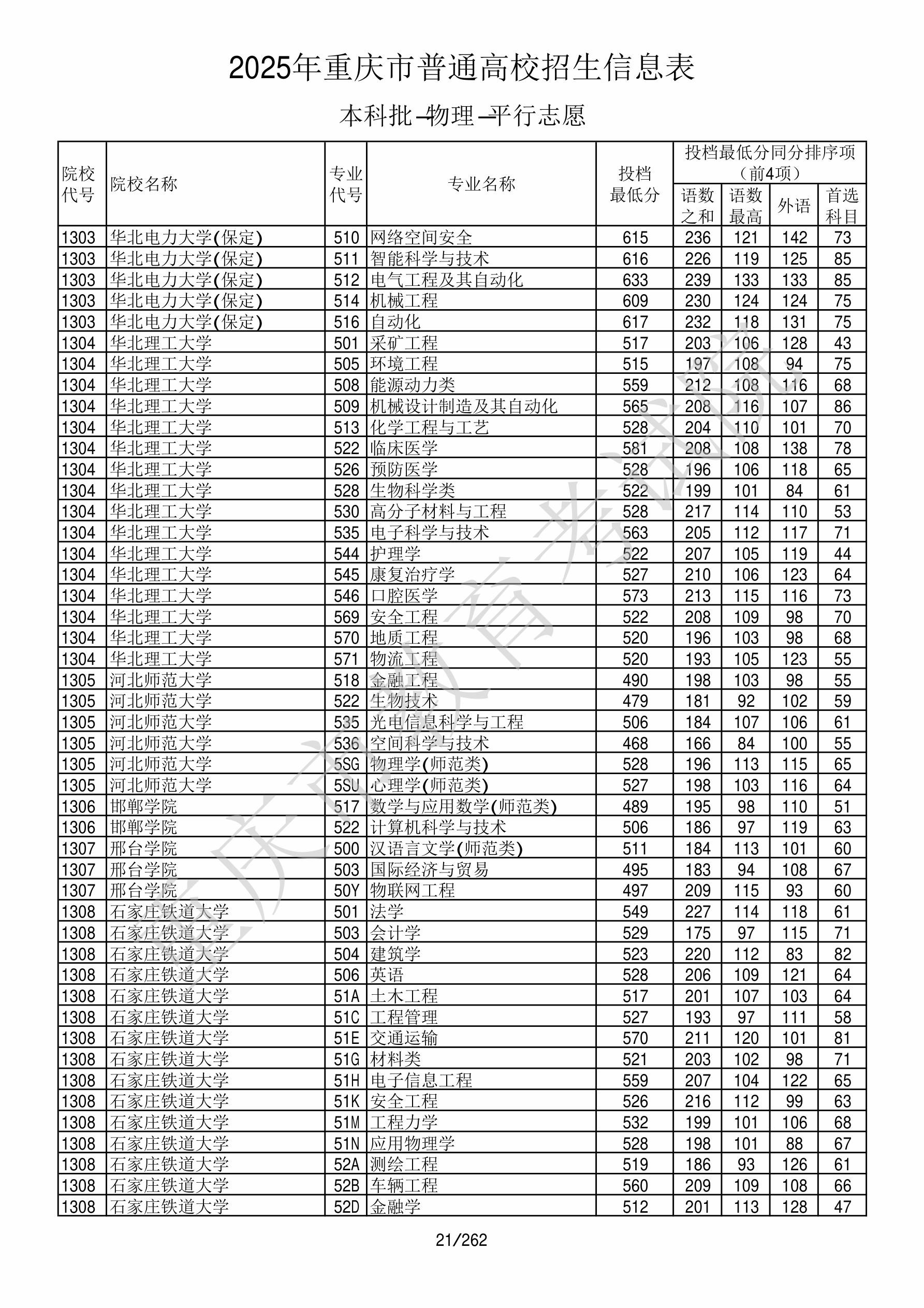 | 院校代码 | 院校名称 | 专业代码 | 专业名称 | 最低分数 | 最低位次 | 专业层次 | 限考科目 | 投档 |