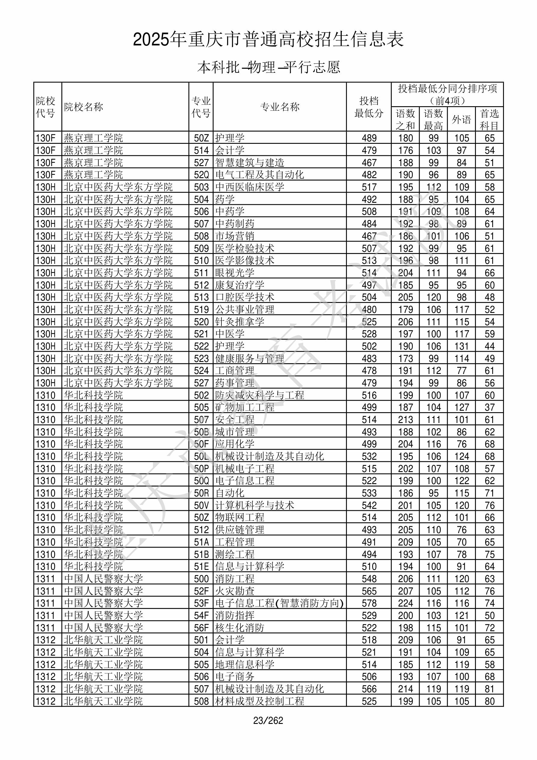 2025年重庆高考普通类本科批 燕京理工学院 的 电气工程及其自动化 专业录取分数溯源信息