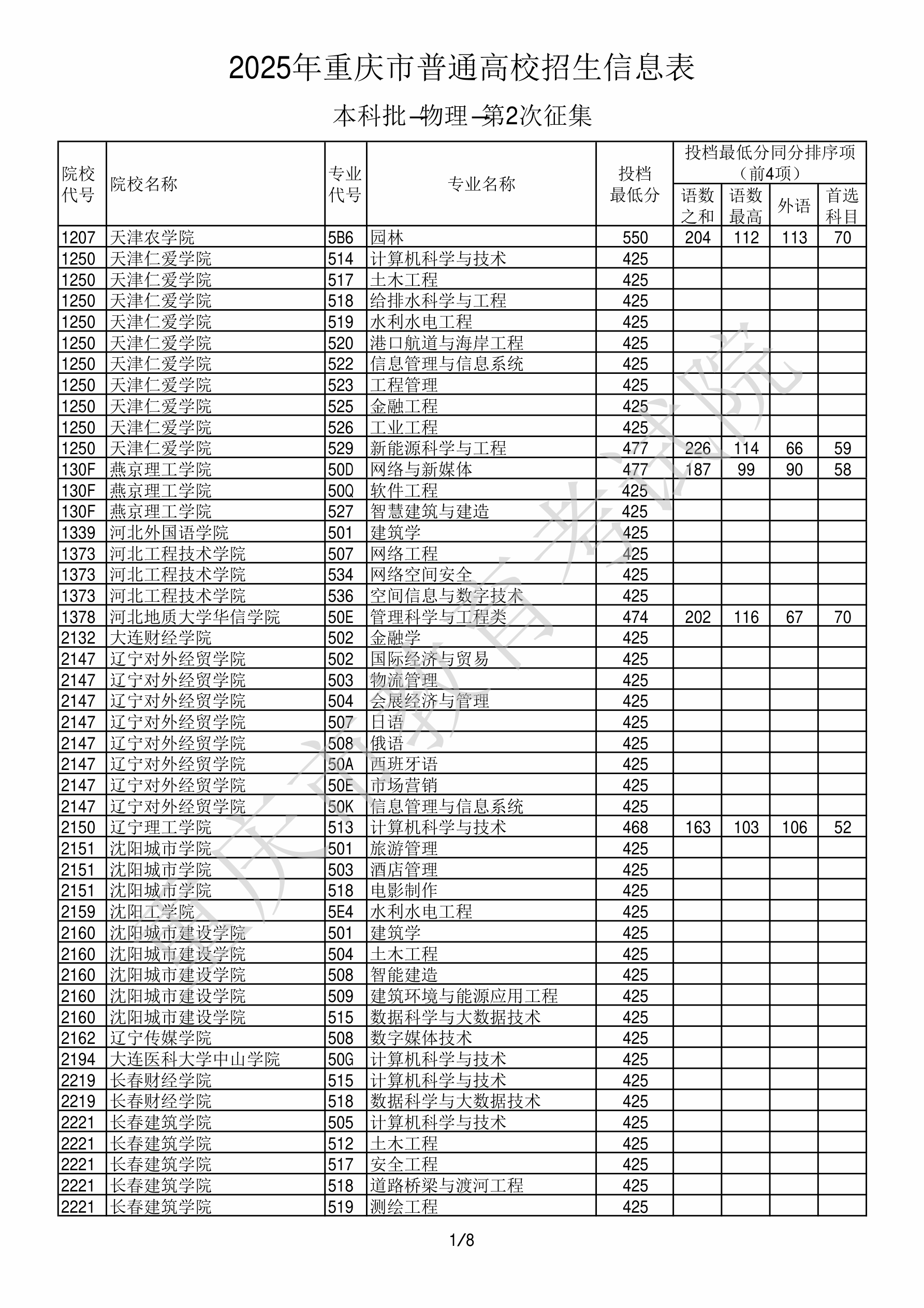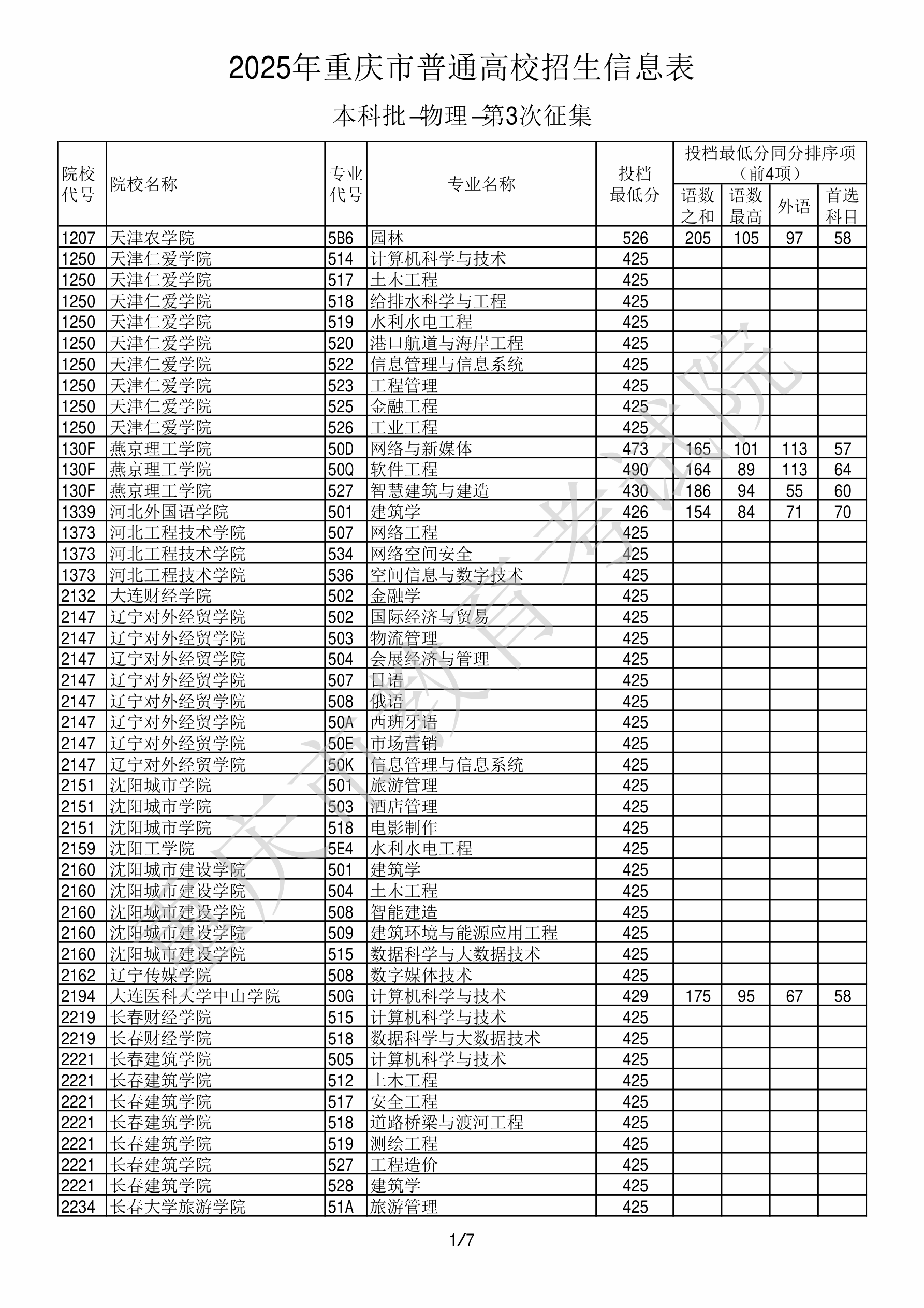 2025年重庆高考普通类本科批 河北外国语学院 的 建筑学 专业录取分数溯源信息