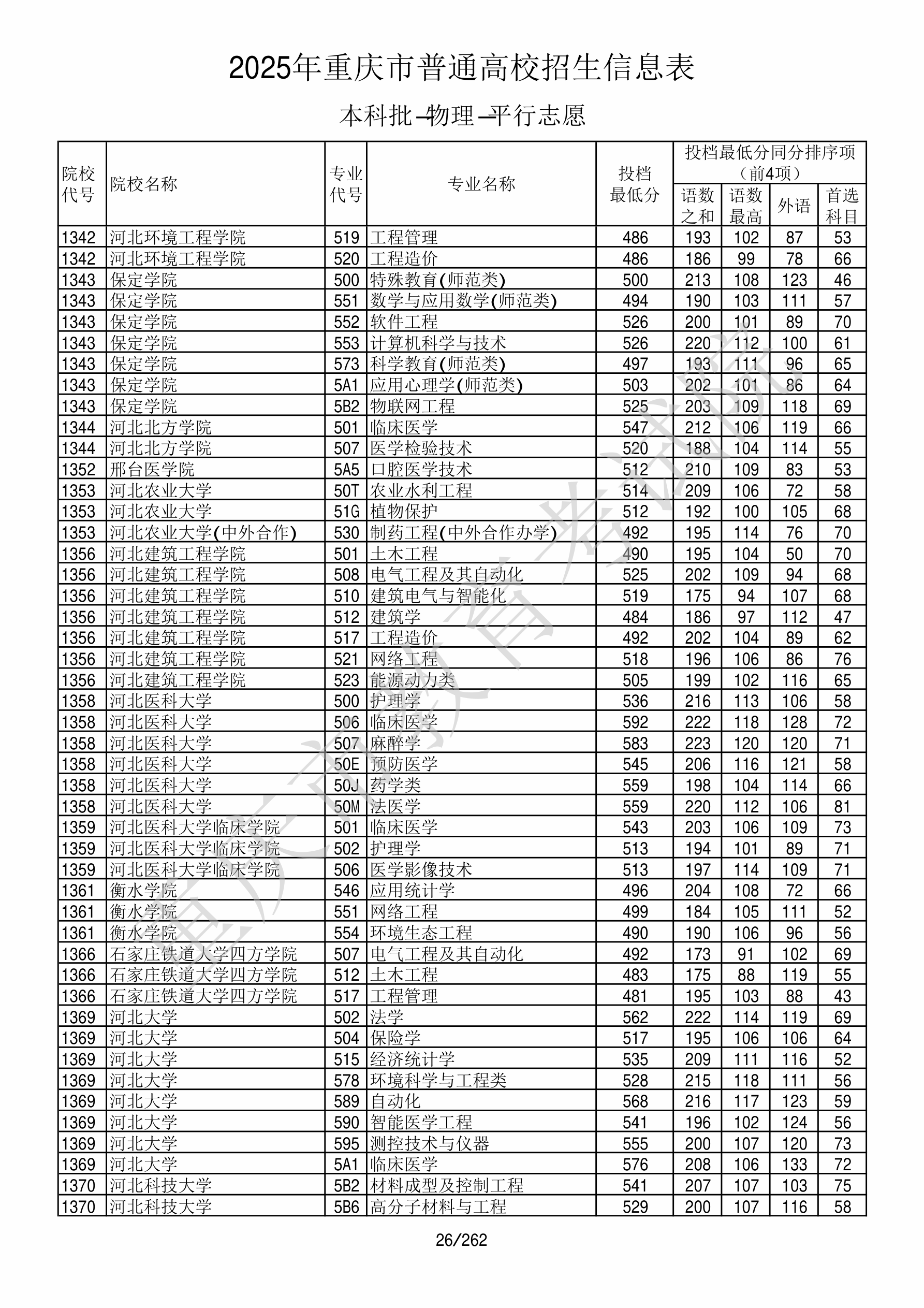 2025年重庆高考普通类本科批 河北大学 的 临床医学 专业录取分数溯源信息