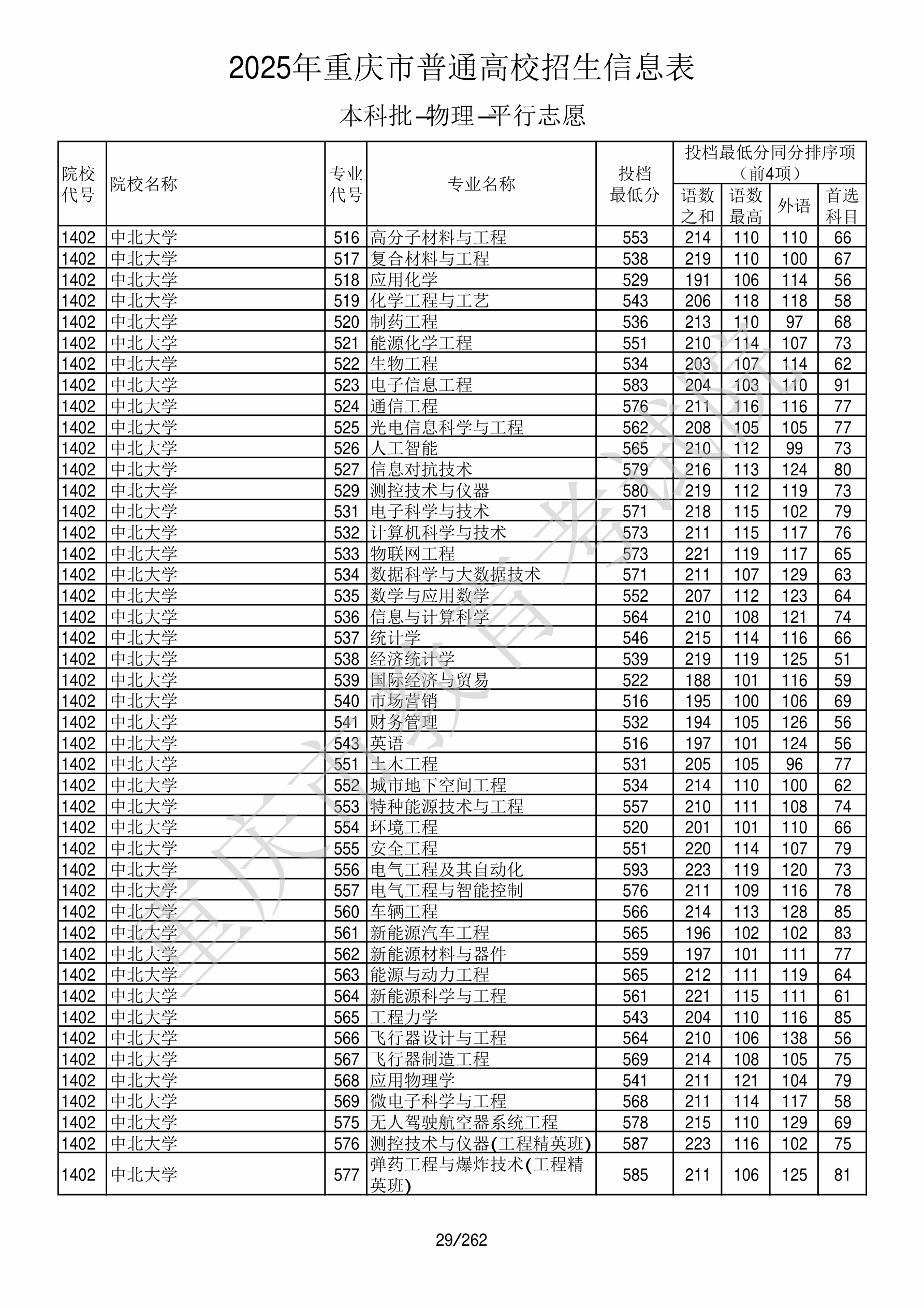 2025年重庆高考普通类本科批 中北大学 的 弹药工程与爆炸技术 专业录取分数溯源信息
