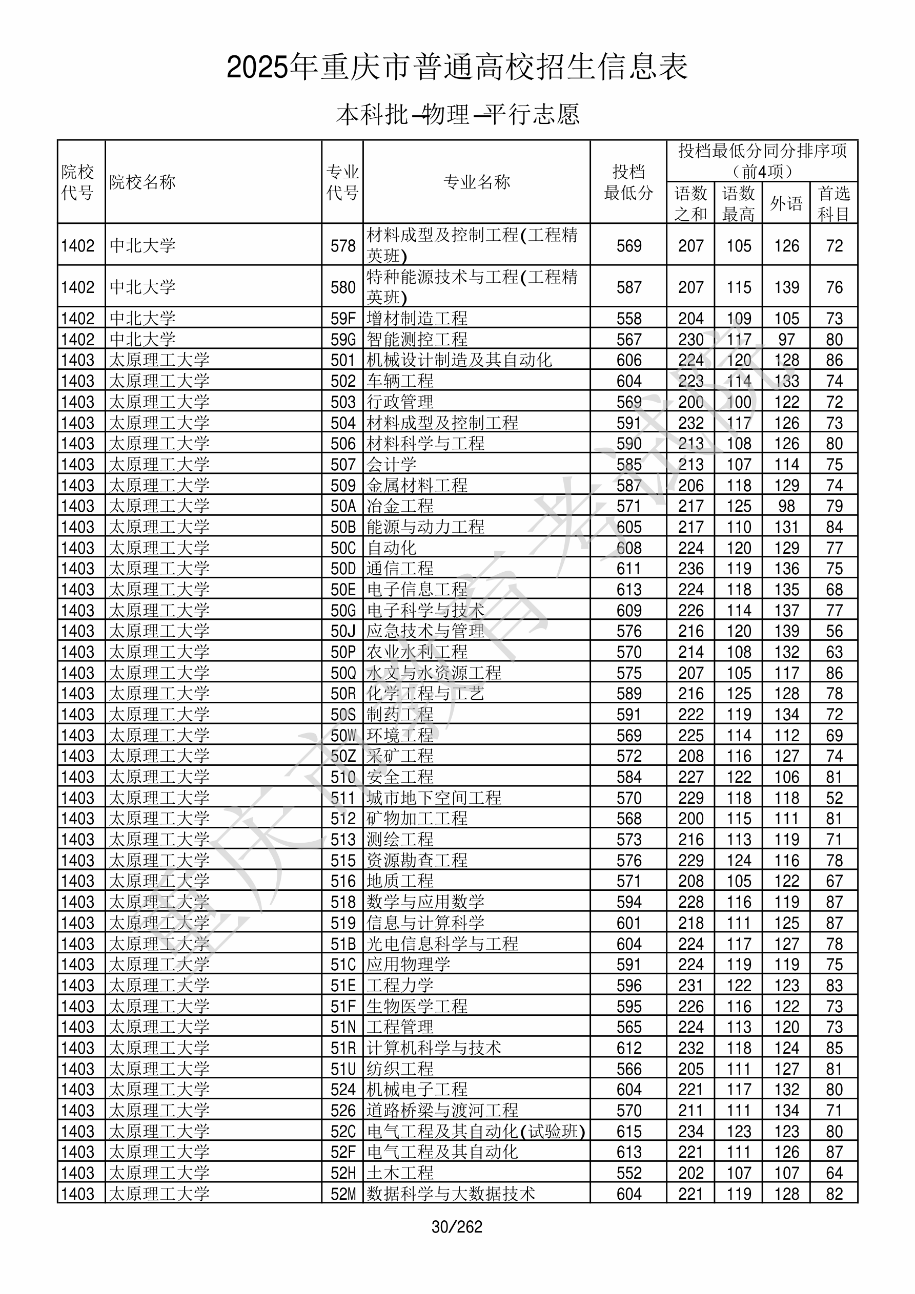 2025年重庆高考普通类本科批 太原理工大学 的 矿物加工工程 专业录取分数溯源信息