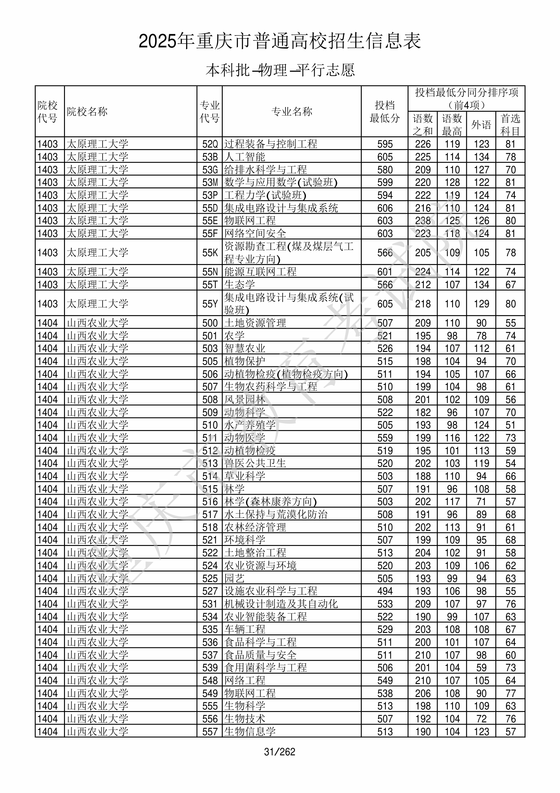 2025年重庆高考普通类本科批 太原理工大学 的 人工智能 专业录取分数溯源信息