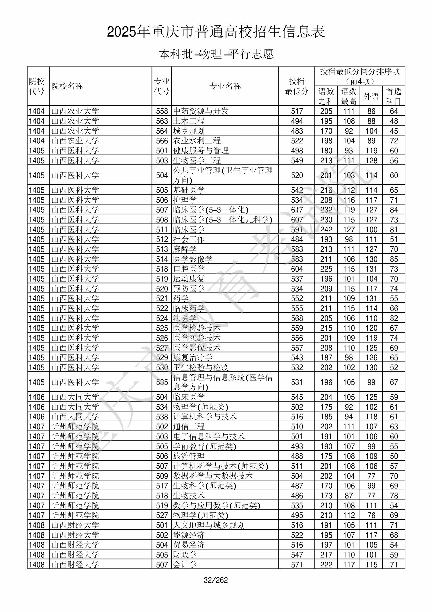 2025年重庆高考普通类本科批 山西医科大学 的 康复治疗学 专业录取分数溯源信息