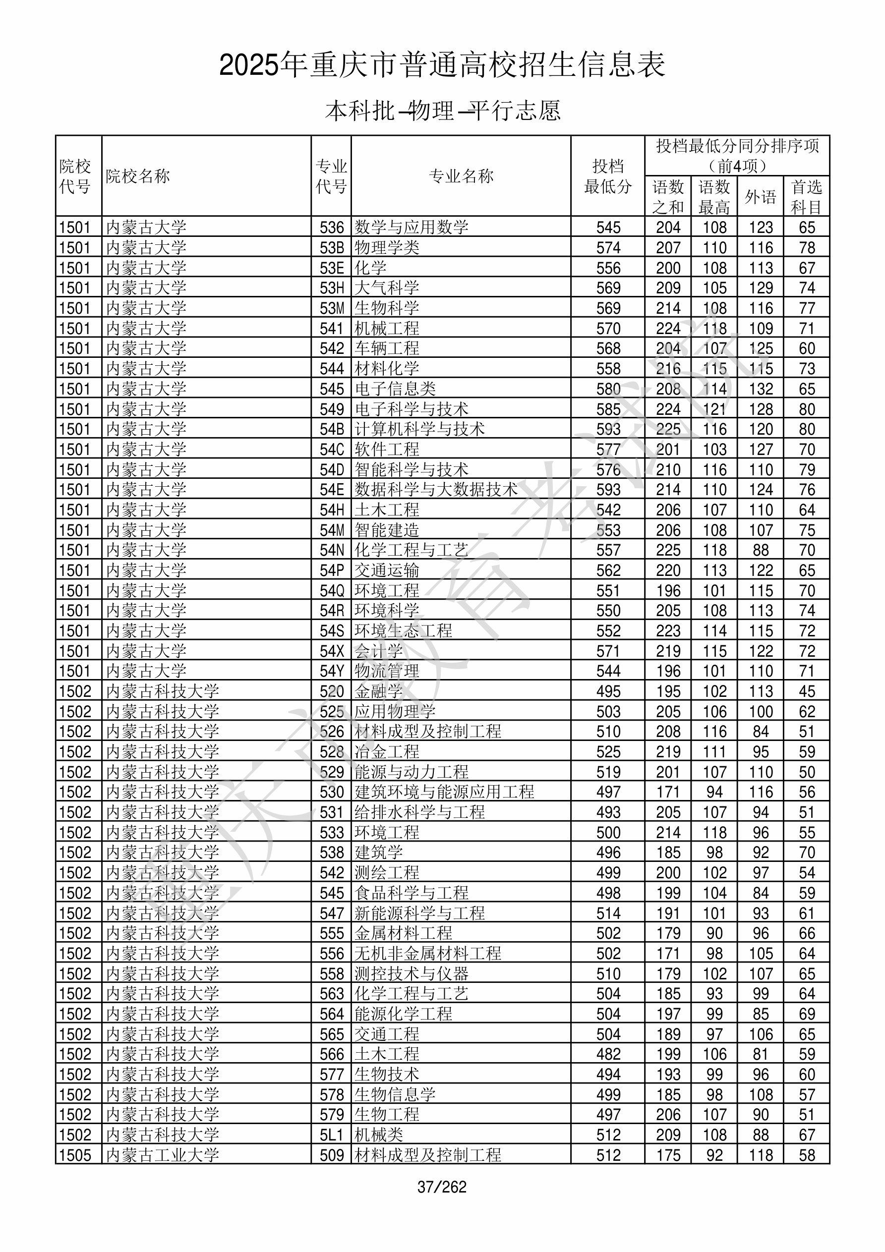 2025年重庆高考普通类本科批 内蒙古工业大学 的 材料成型及控制工程 专业录取分数溯源信息