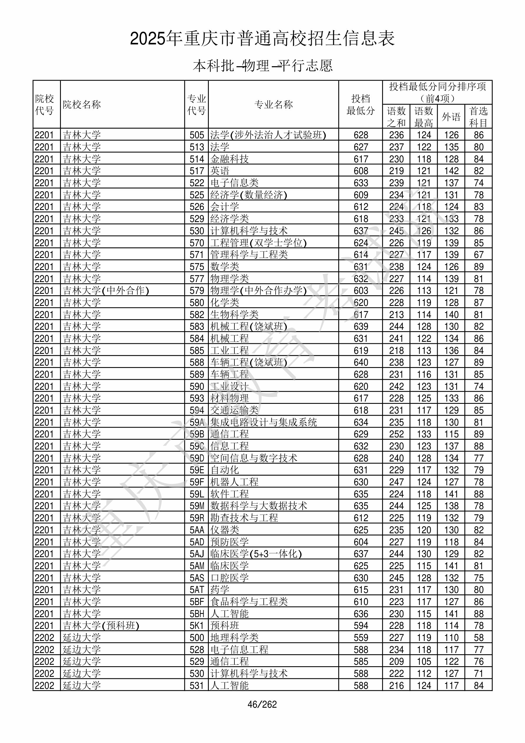 2025年重庆高考普通类本科批 延边大学 的 人工智能 专业录取分数溯源信息
