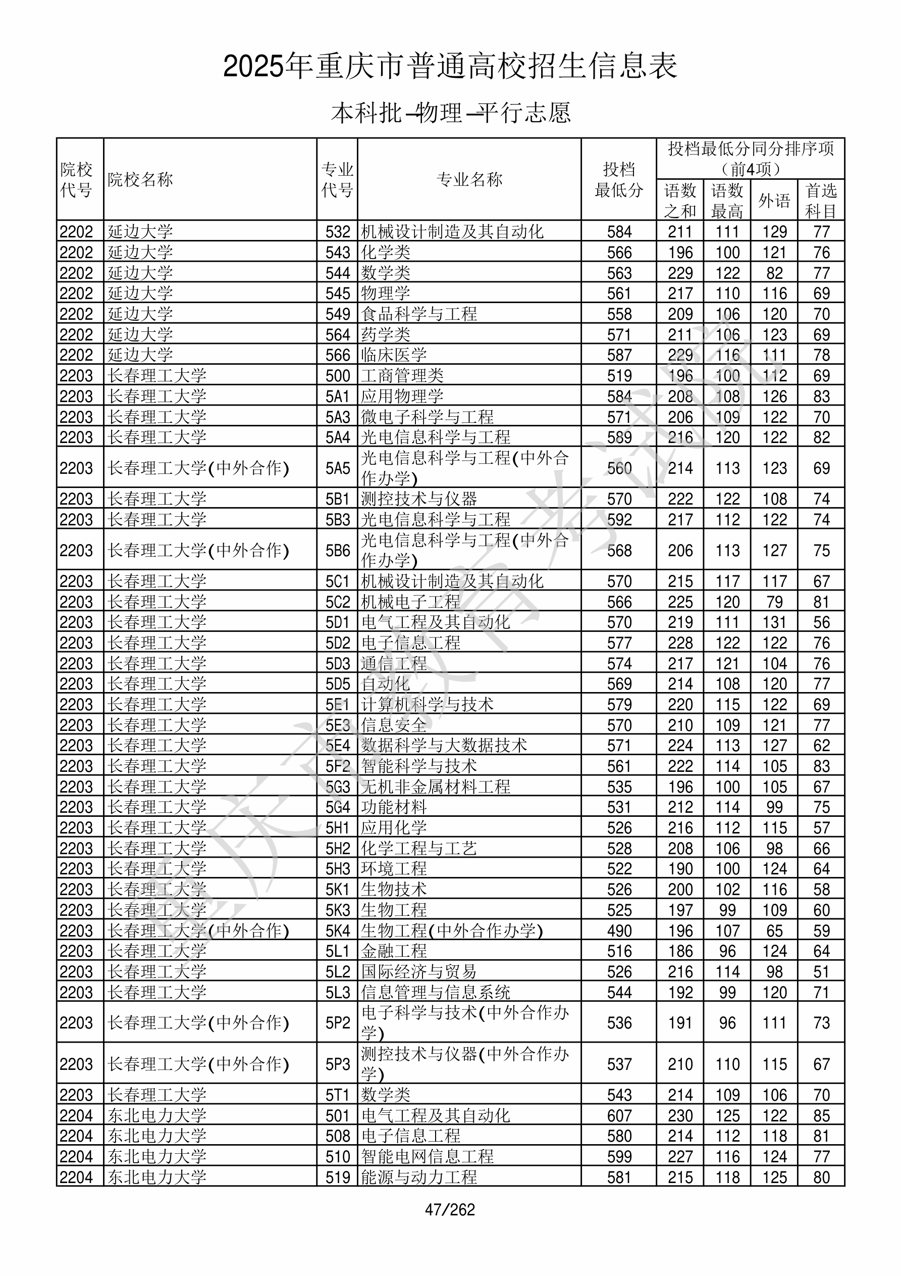 2025年重庆高考普通类本科批 长春理工大学 的 国际经济与贸易 专业录取分数溯源信息