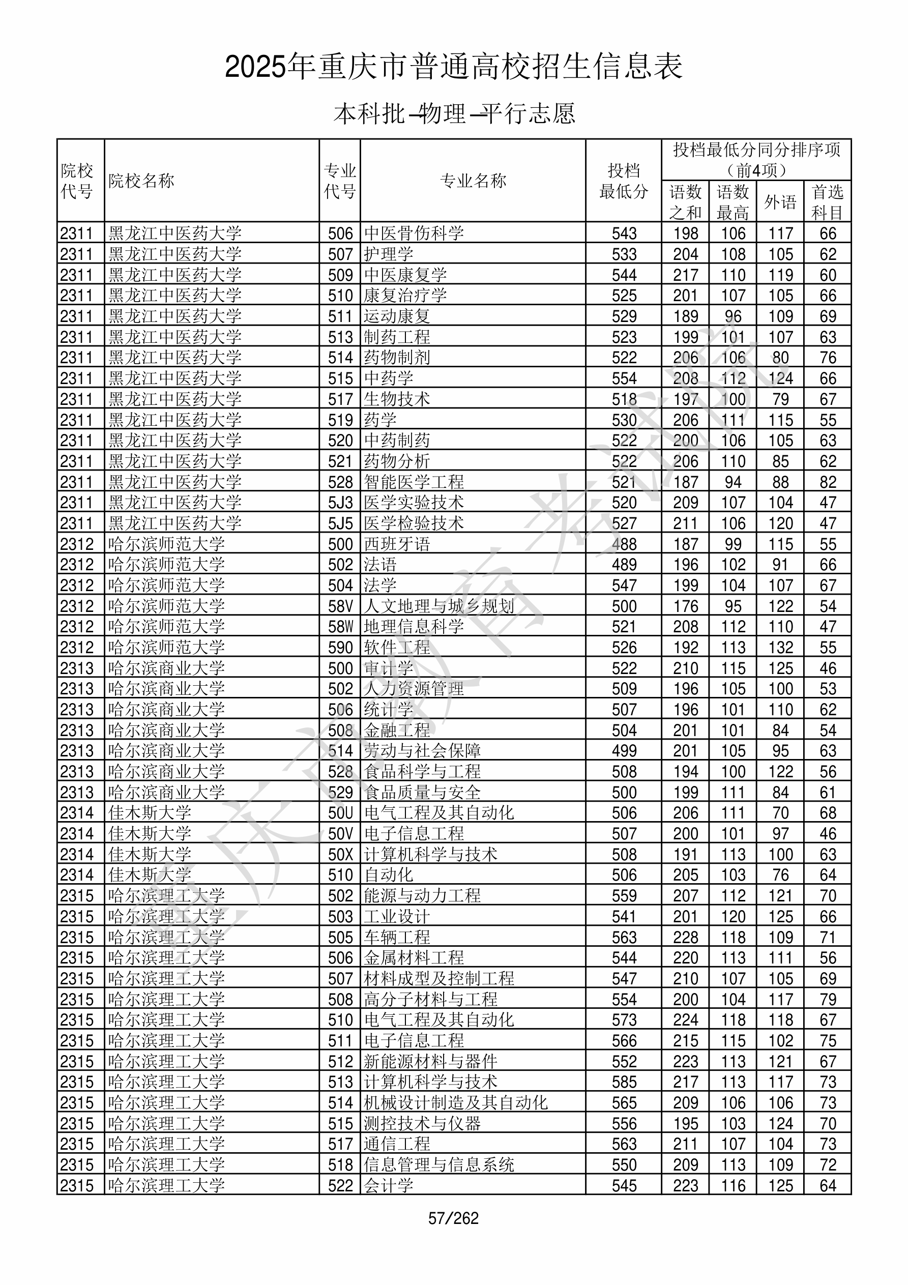 2025年重庆高考普通类本科批 哈尔滨理工大学 的 通信工程 专业录取分数溯源信息
