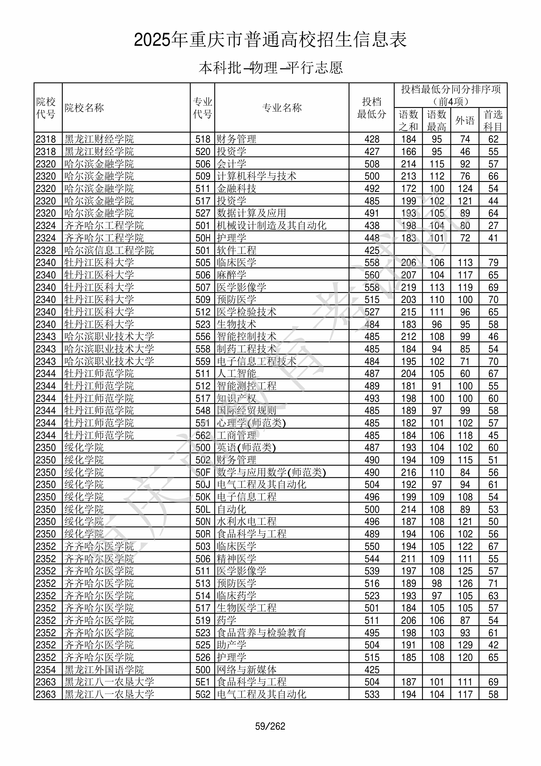 2025年重庆高考普通类本科批 齐齐哈尔医学院 的 药学 专业录取分数溯源信息