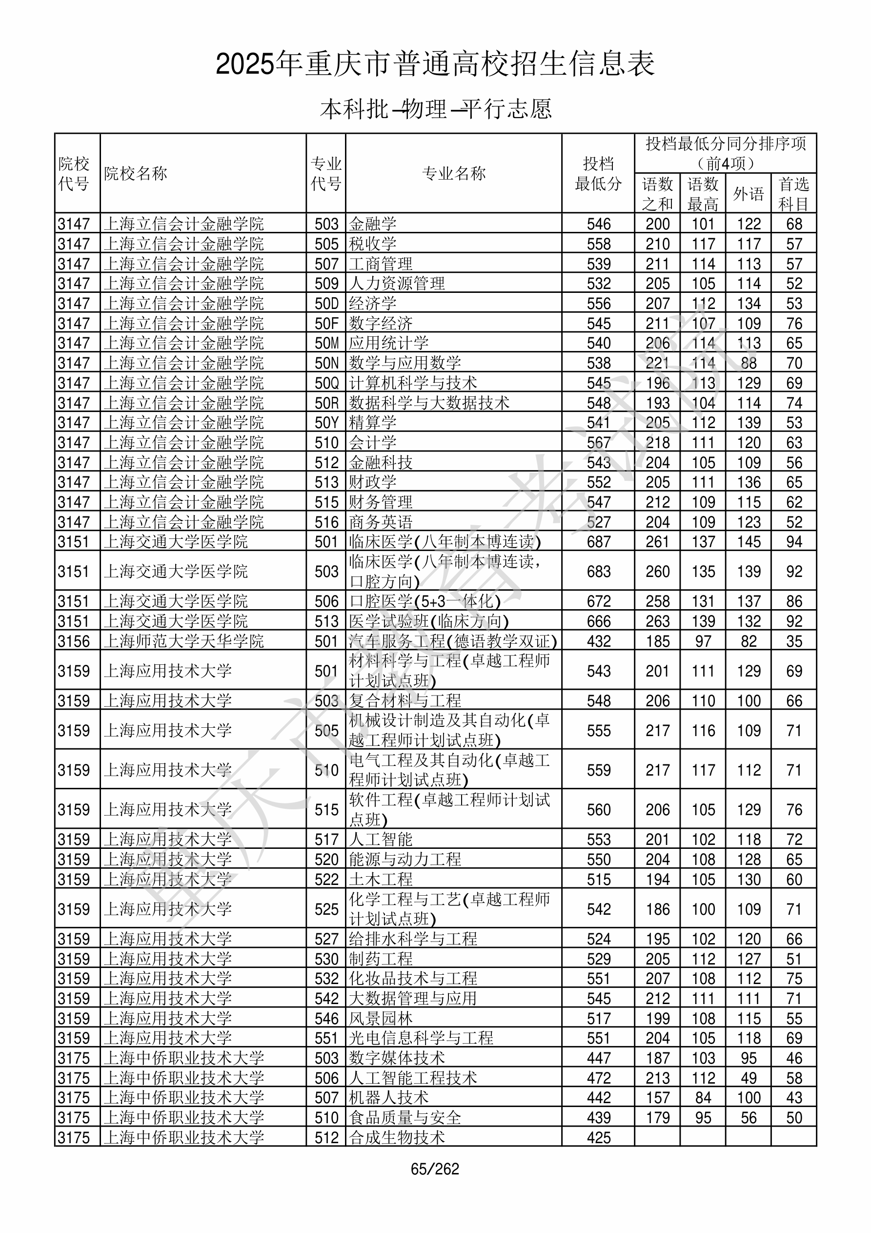 2025年重庆高考普通类本科批 上海立信会计金融学院 的 人力资源管理 专业录取分数溯源信息