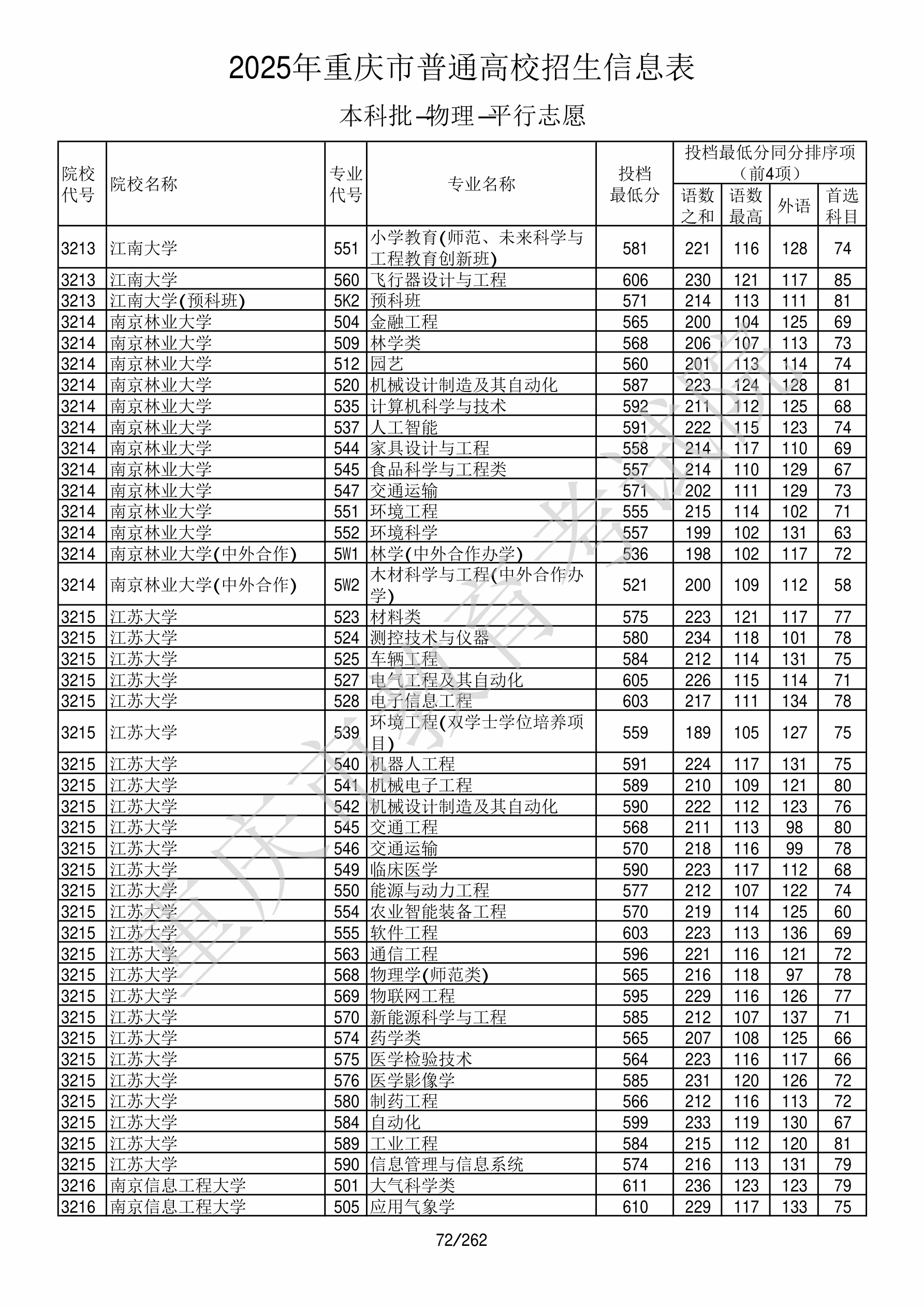 2025年重庆高考普通类本科批 南京信息工程大学 的 应用气象学 专业录取分数溯源信息