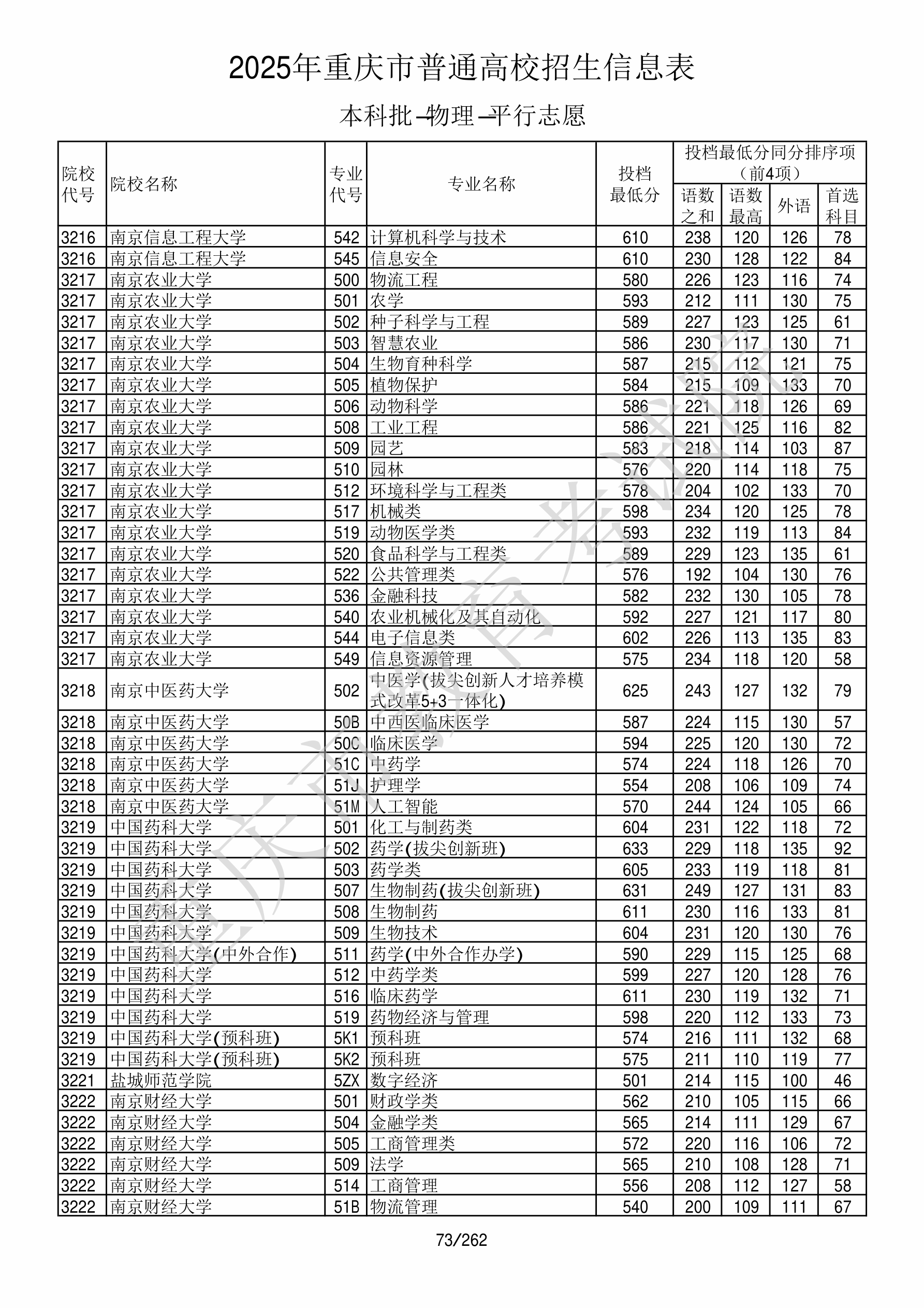 2025年重庆高考普通类本科批 南京信息工程大学 的 计算机科学与技术 专业录取分数溯源信息