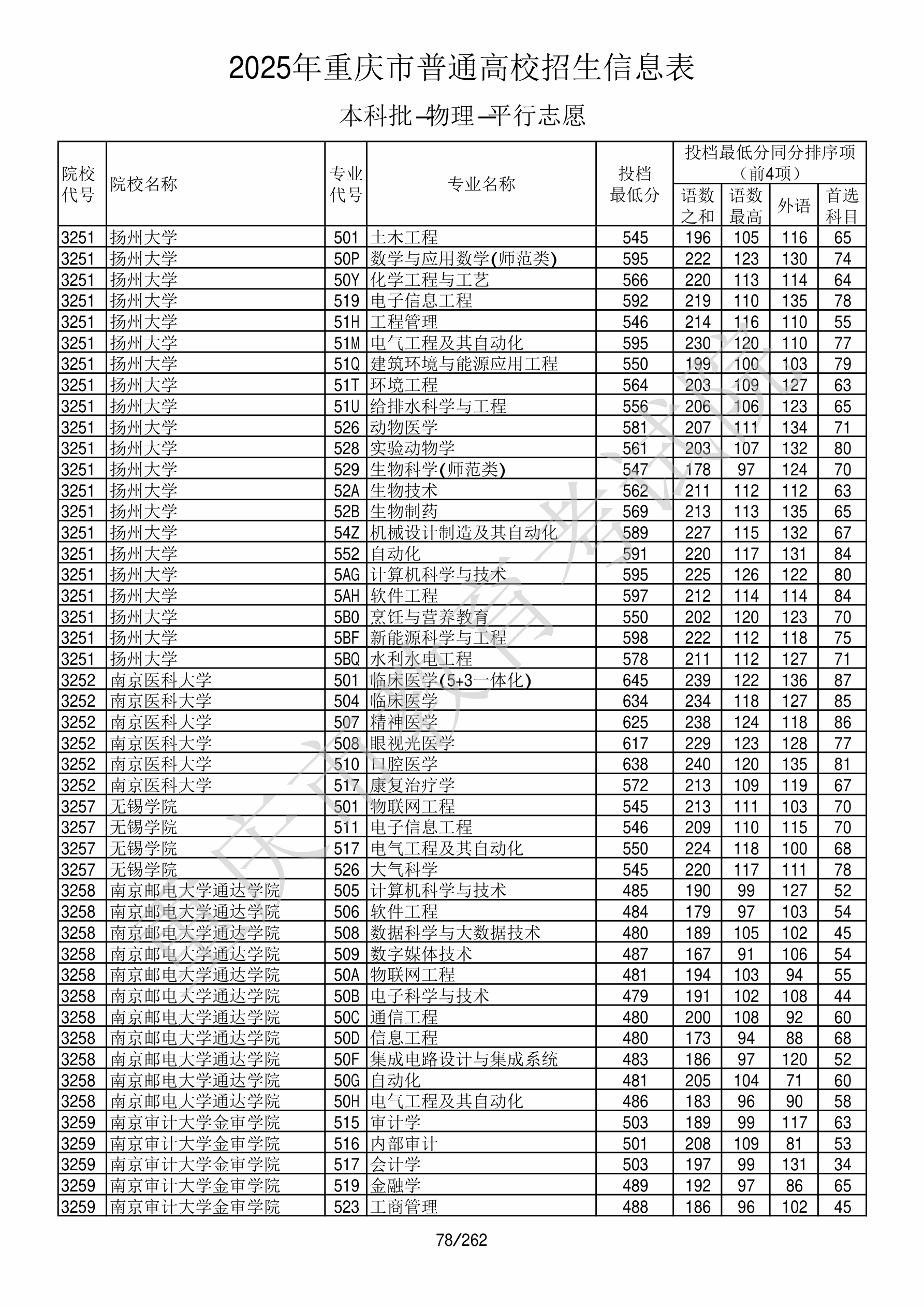 | 院校代码 | 院校名称 | 专业代码 | 专业名称 | 最低分数 | 最低位次 | 专业层次 | 限考科目 | 投档 |