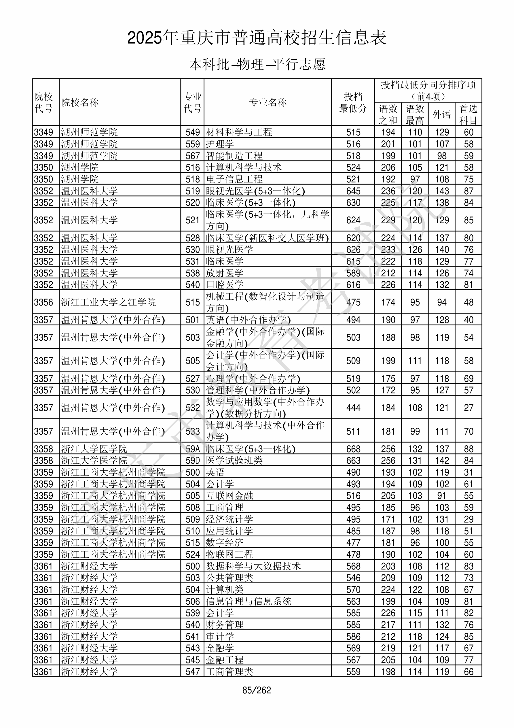 2025年重庆高考普通类本科批 温州医科大学 的 眼视光医学 专业录取分数溯源信息