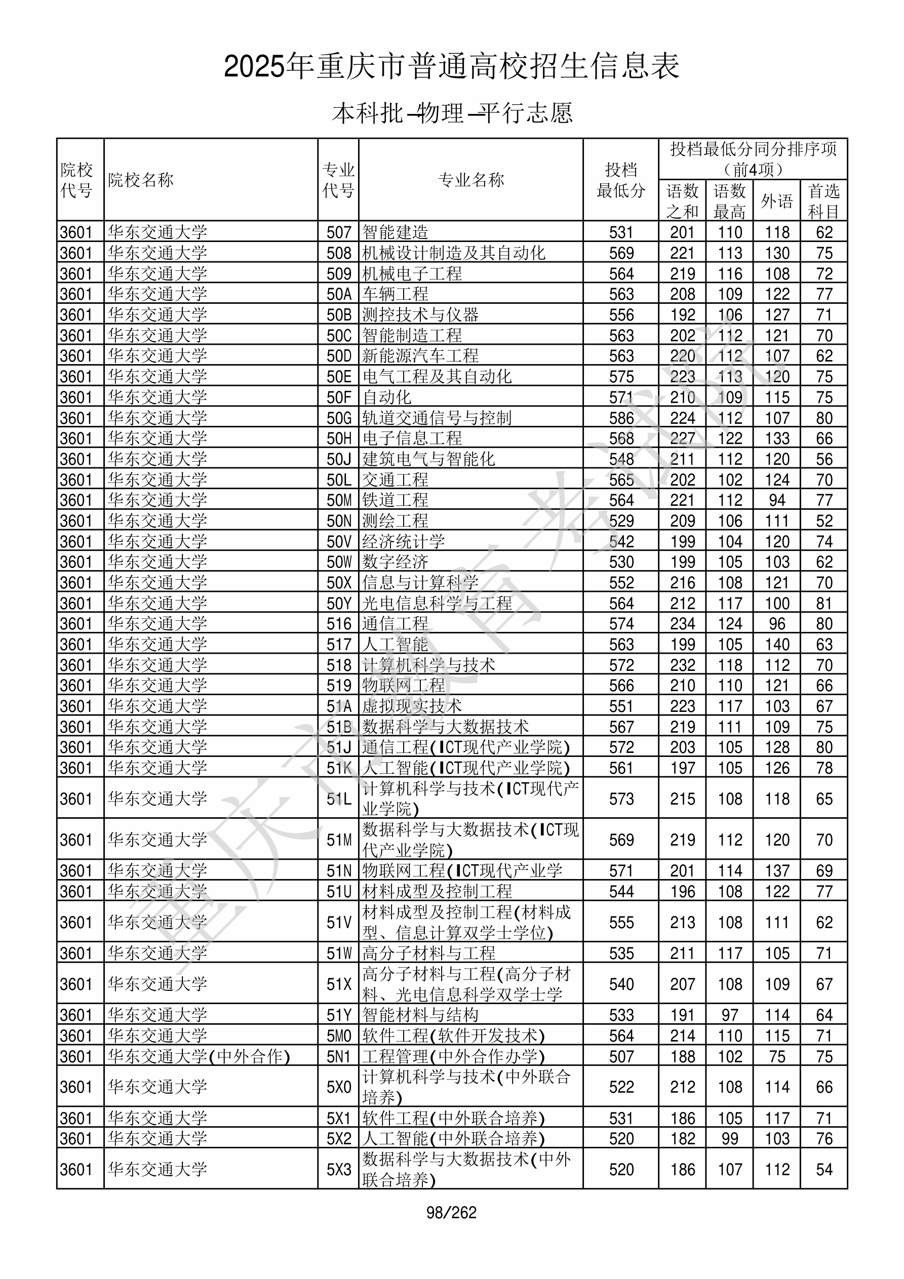 2025年重庆高考普通类本科批 华东交通大学 的 人工智能 专业录取分数溯源信息