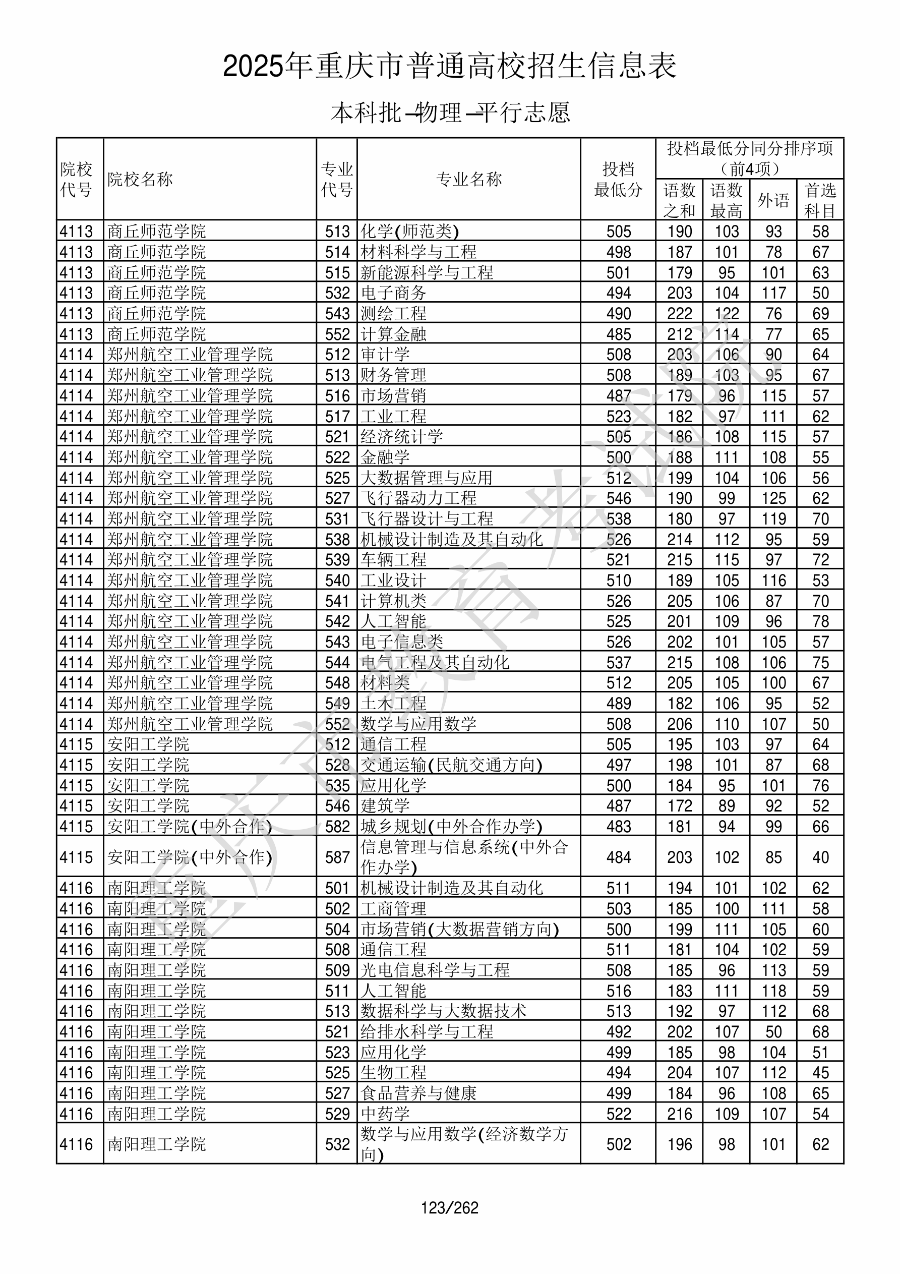 2025年重庆高考普通类本科批 郑州航空工业管理学院 的 数学与应用数学 专业录取分数溯源信息