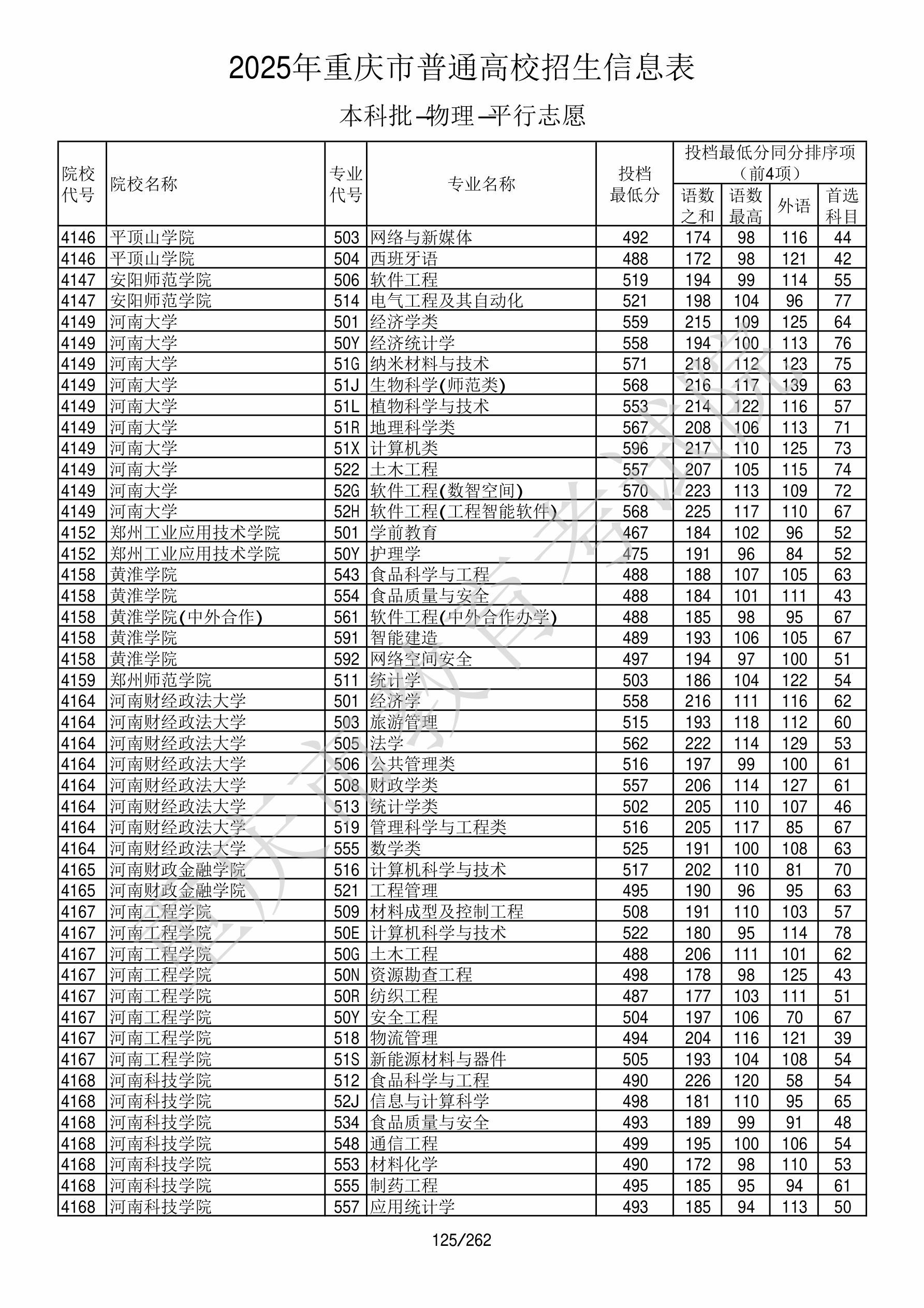 2025年重庆高考普通类本科批 河南科技学院 的 食品科学与工程 专业录取分数溯源信息