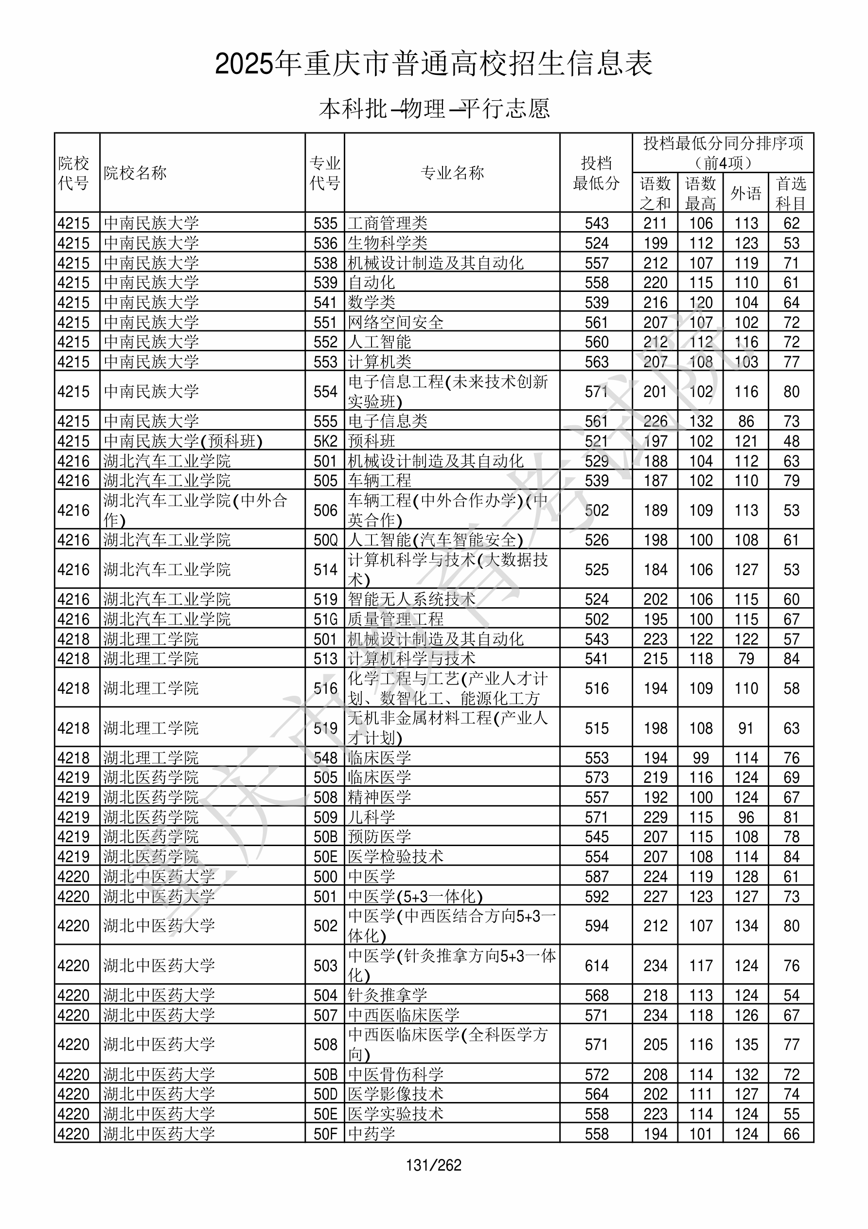 | 4219 | 湖北医药学院 | 50B | 预防医学 | 545 | 34938 | 本科 | 物理 ,再选: 化学 | 1 |