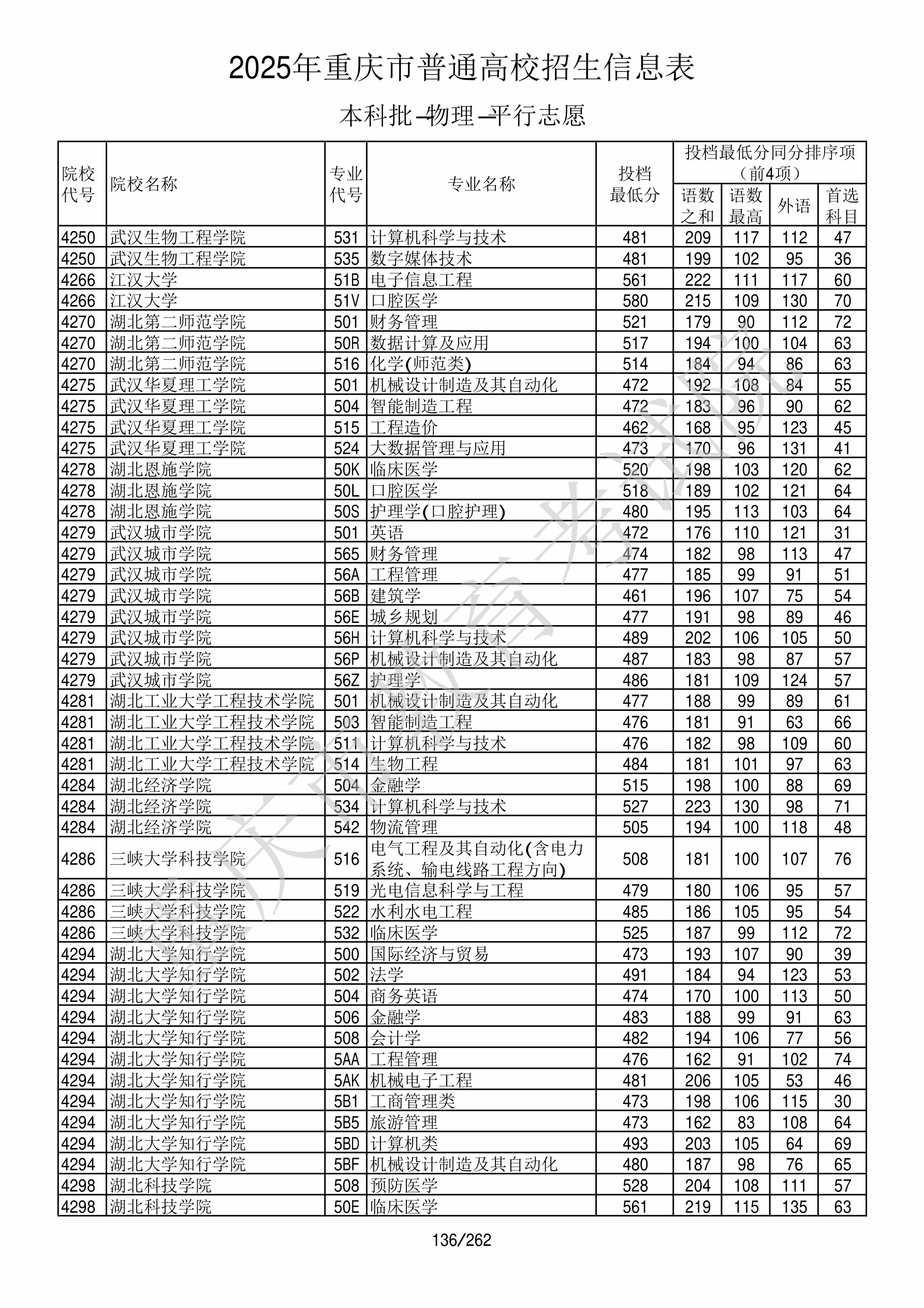 2025年重庆高考普通类本科批 武汉生物工程学院 的 计算机科学与技术 专业录取分数溯源信息
