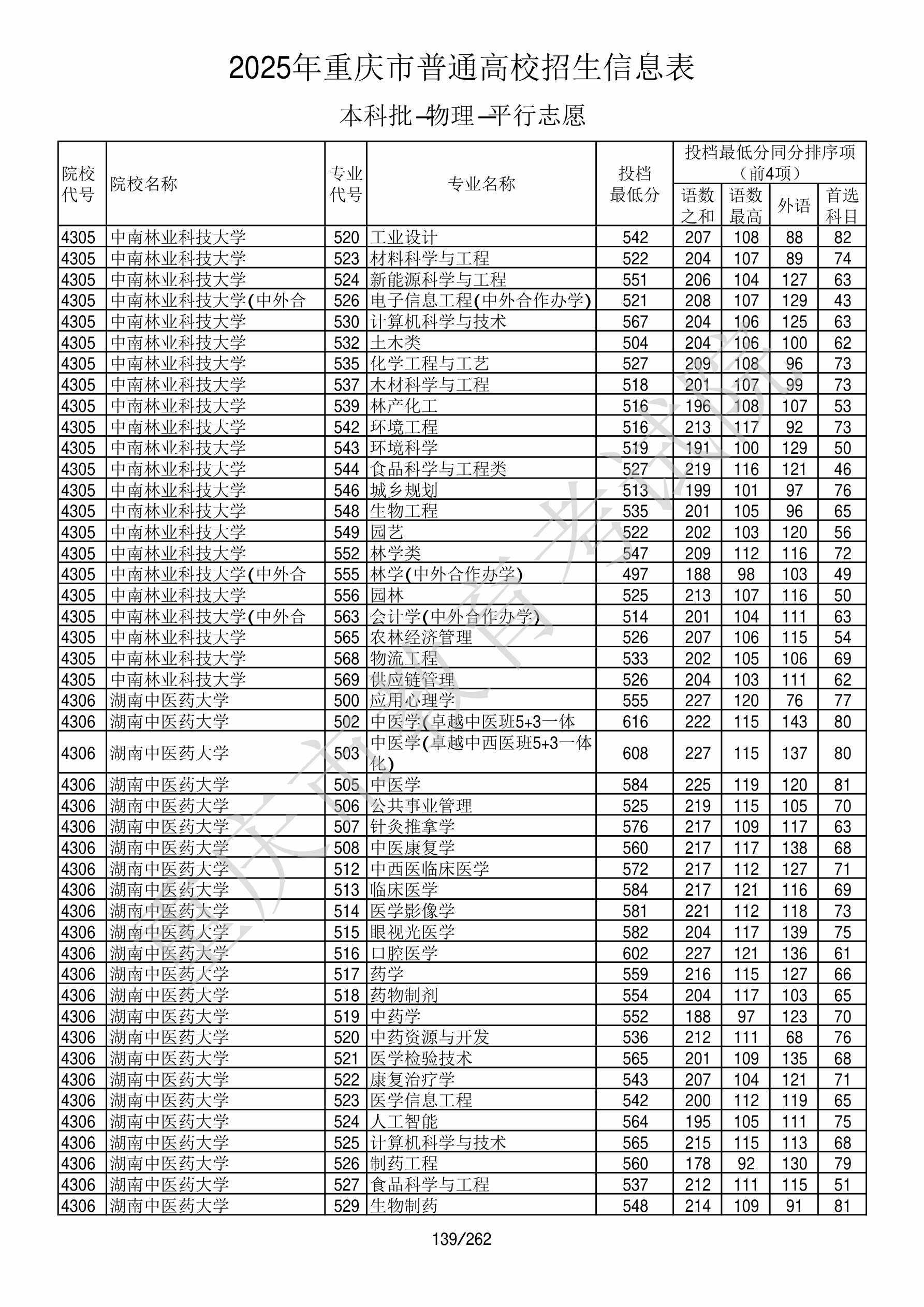 2025年重庆高考普通类本科批 中南林业科技大学 的 会计学 专业录取分数溯源信息