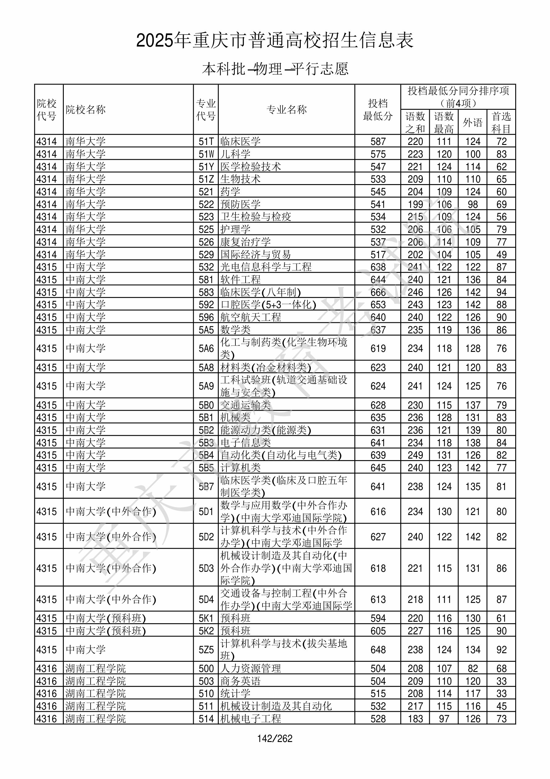 2025年重庆高考普通类本科批 中南大学 的 软件工程 专业录取分数溯源信息