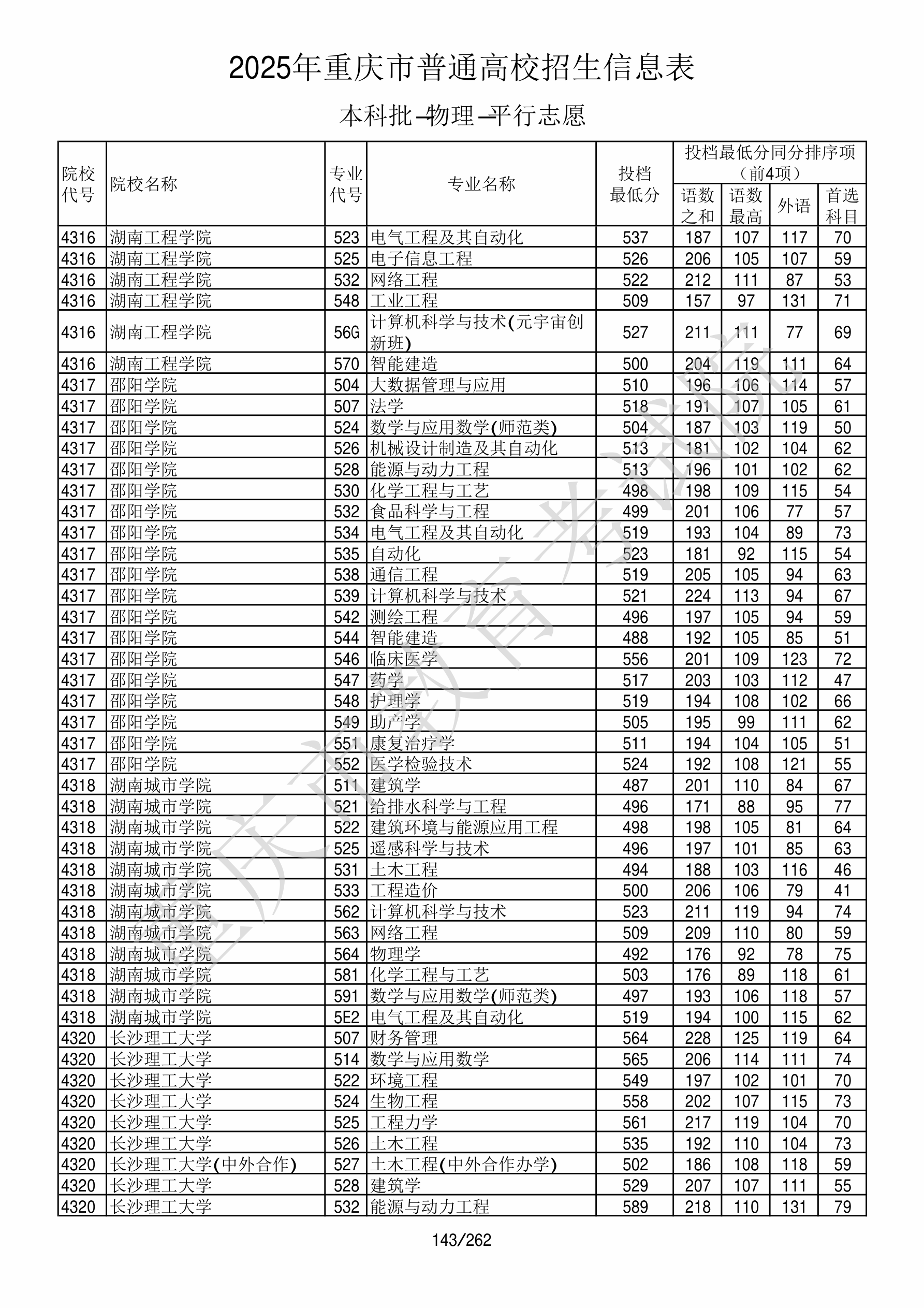 2025年重庆高考普通类本科批 湖南城市学院 的 给排水科学与工程 专业录取分数溯源信息
