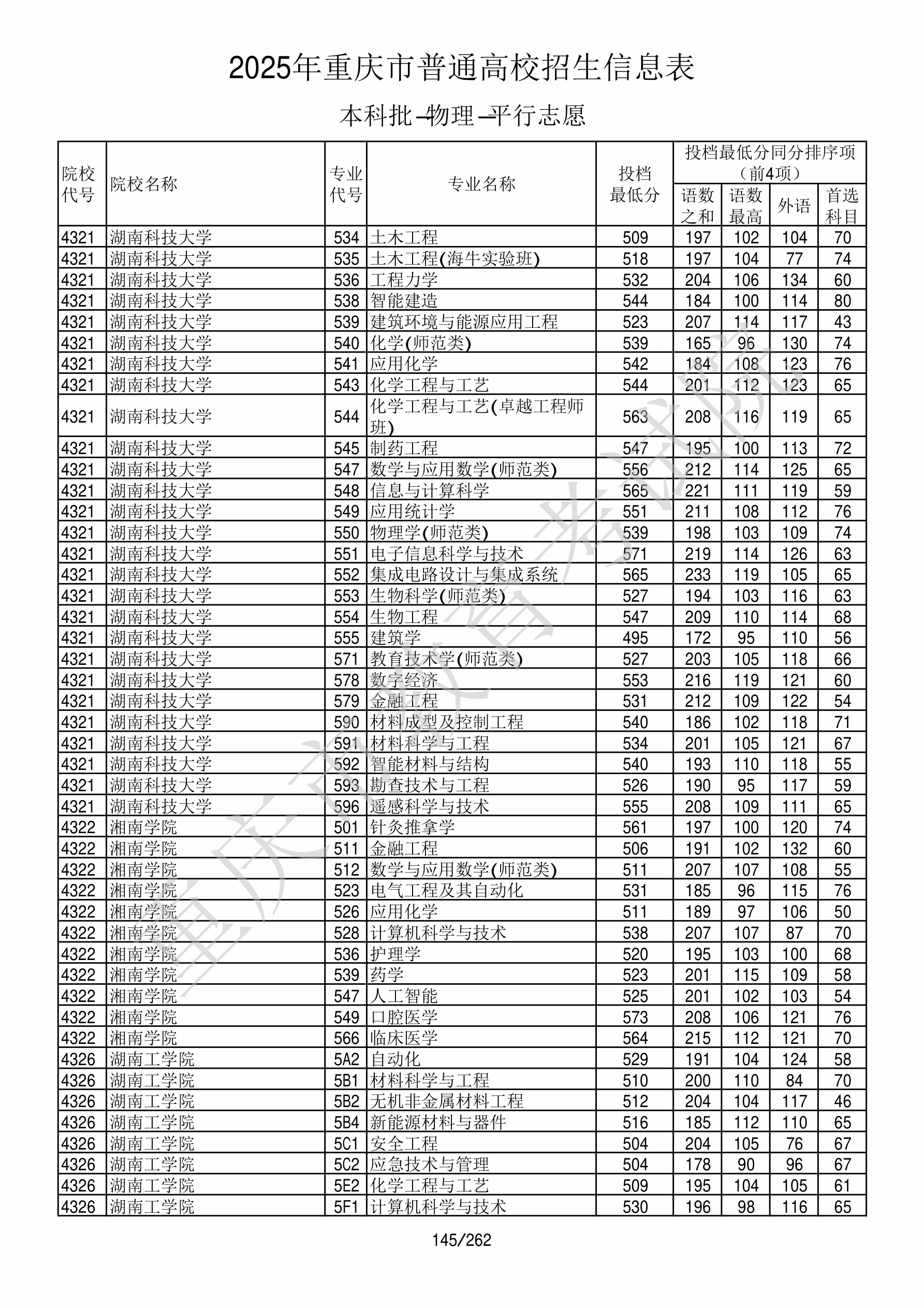 2025年重庆高考普通类本科批 湘南学院 的 金融工程 专业录取分数溯源信息
