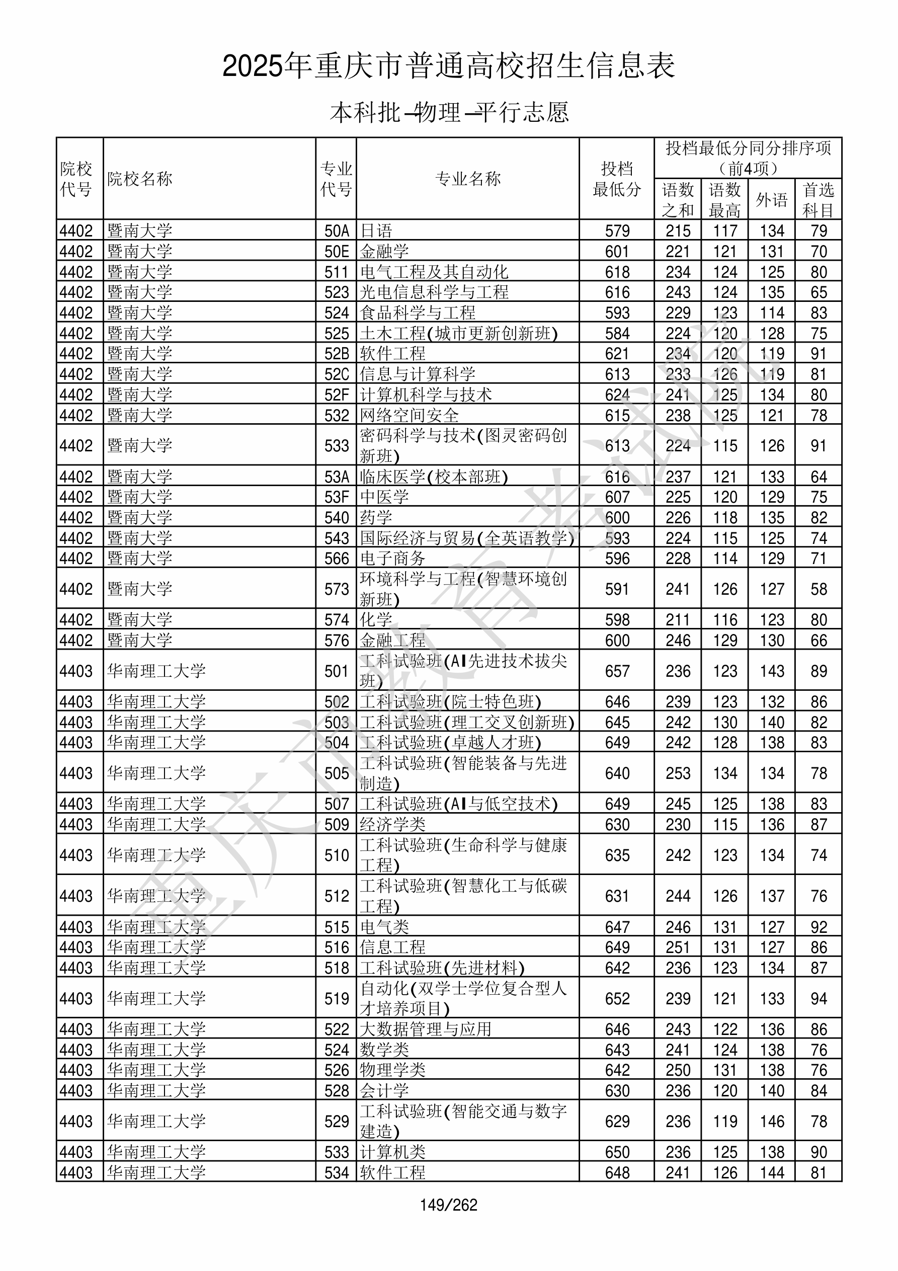 2025年重庆高考普通类本科批 华南理工大学 的 经济学类 专业录取分数溯源信息
