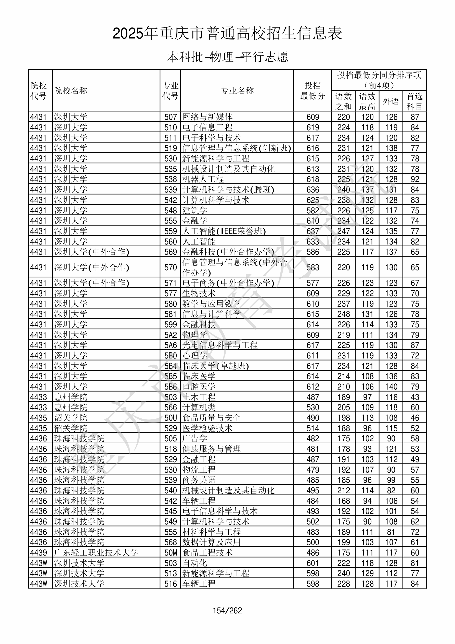 2025年重庆高考普通类本科批 深圳技术大学 的 自动化 专业录取分数溯源信息